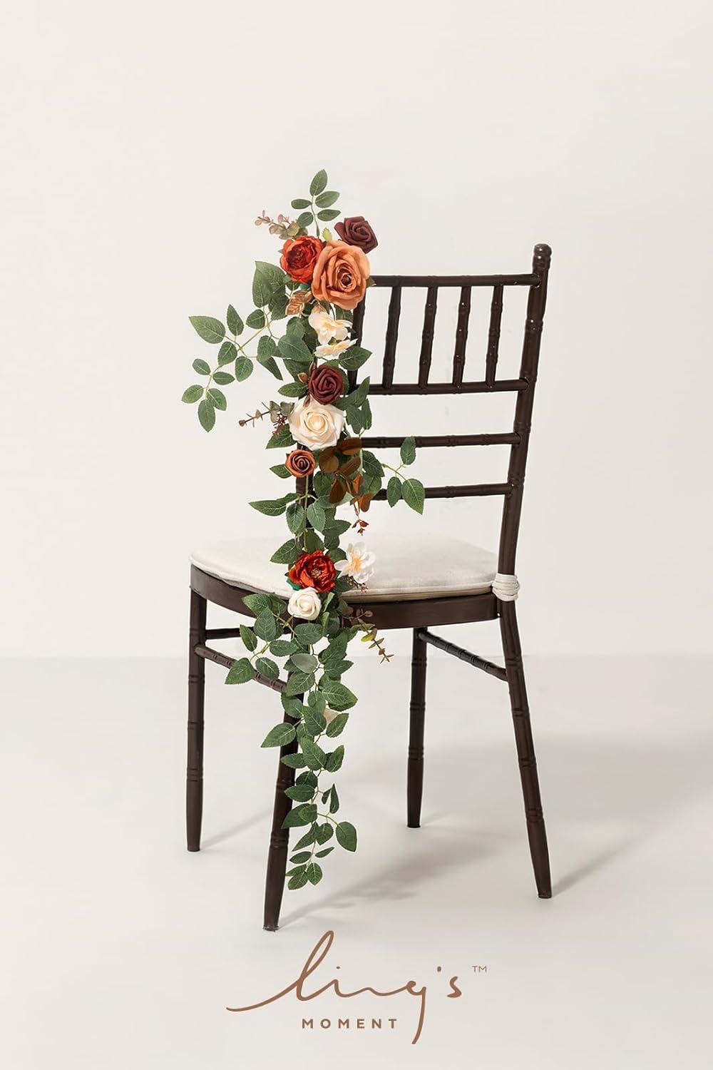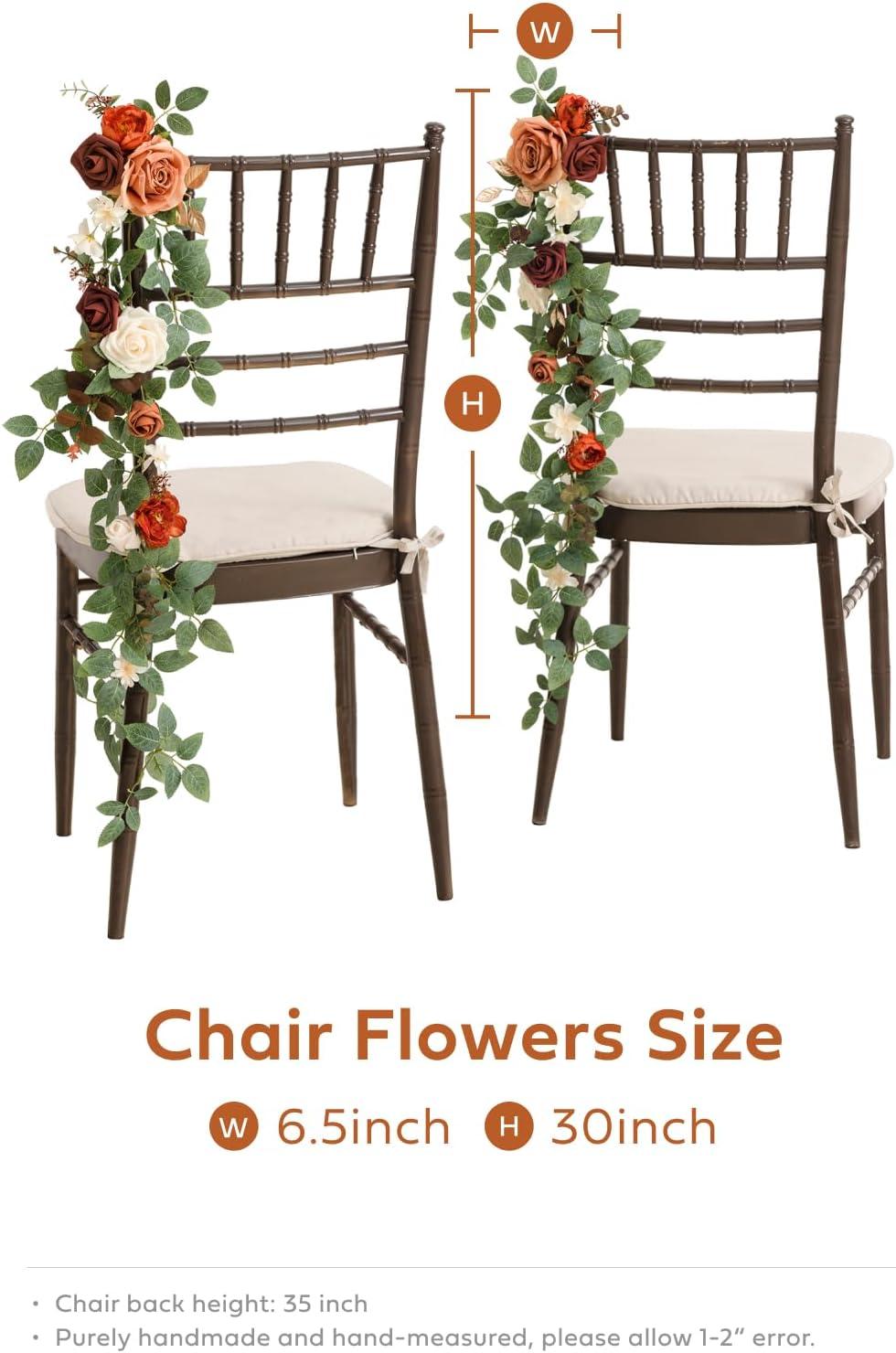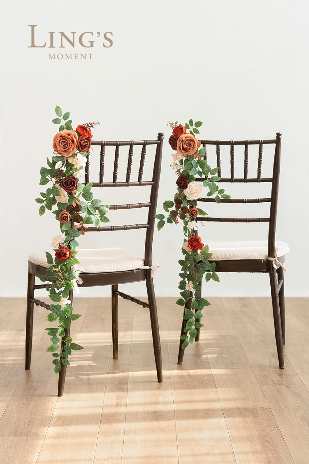 Ling's moment 10pcs Wedding Chair Decorations Aisle Floral Swag Artificial Pew Flowers Hanging Garland Apricot & Cream for Ceremony Reception Church Rose Floral Faux Arrangement Party Outdoor Decor(Sunset Terracotta)