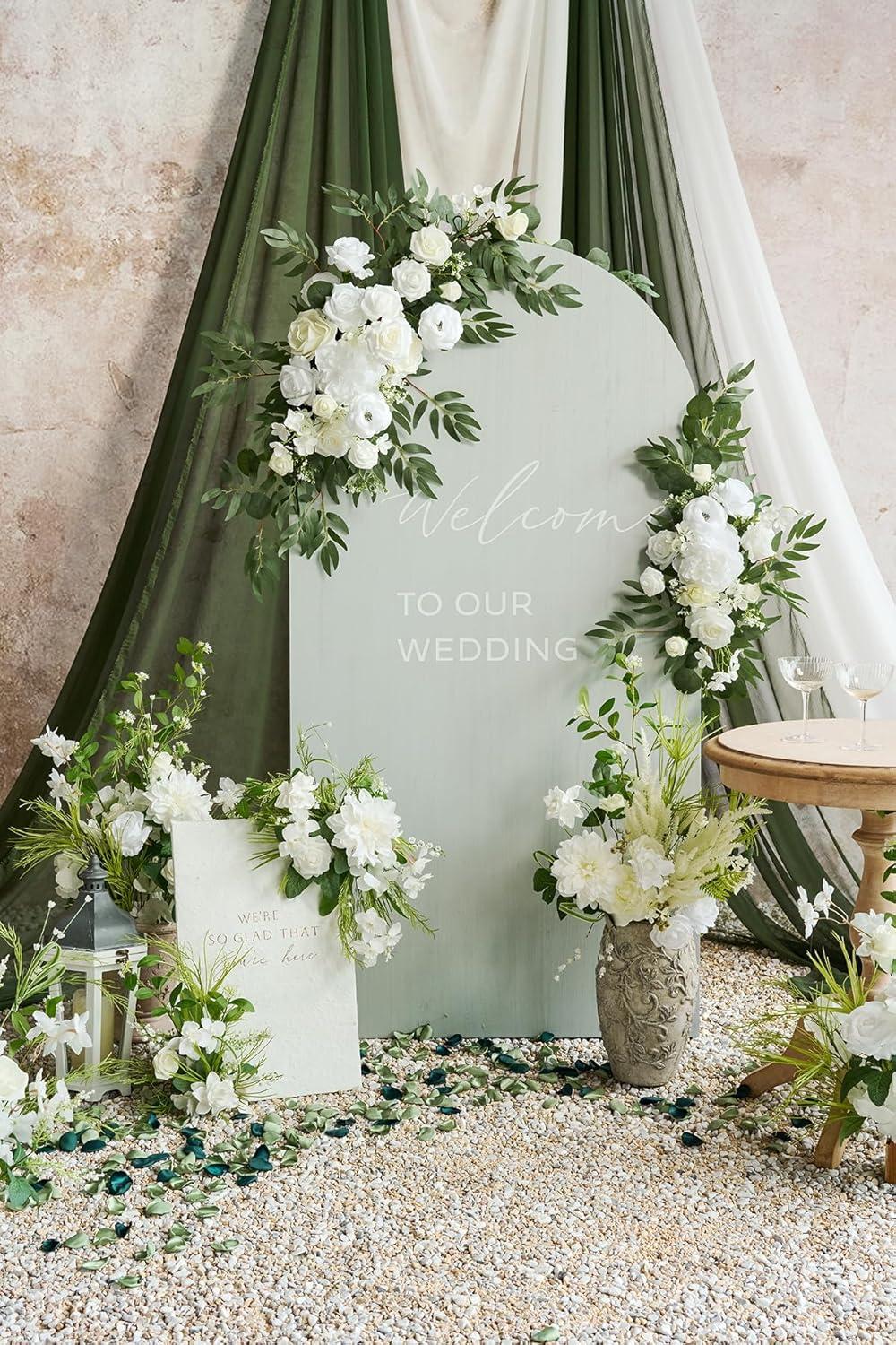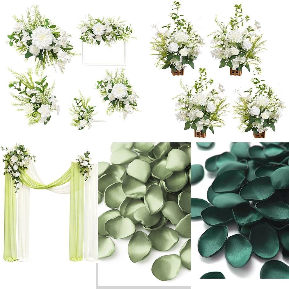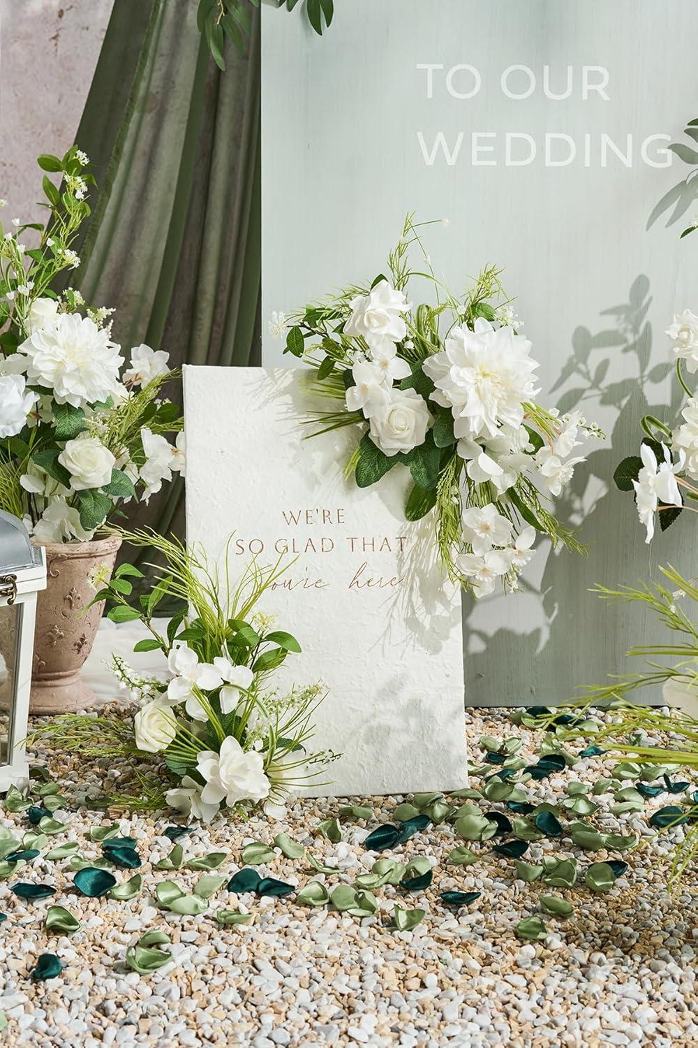 .Package: Sign Flower x 2, Aisle Flower x 4, Arch Flower with Drapes x 1, 400pcs rose petals