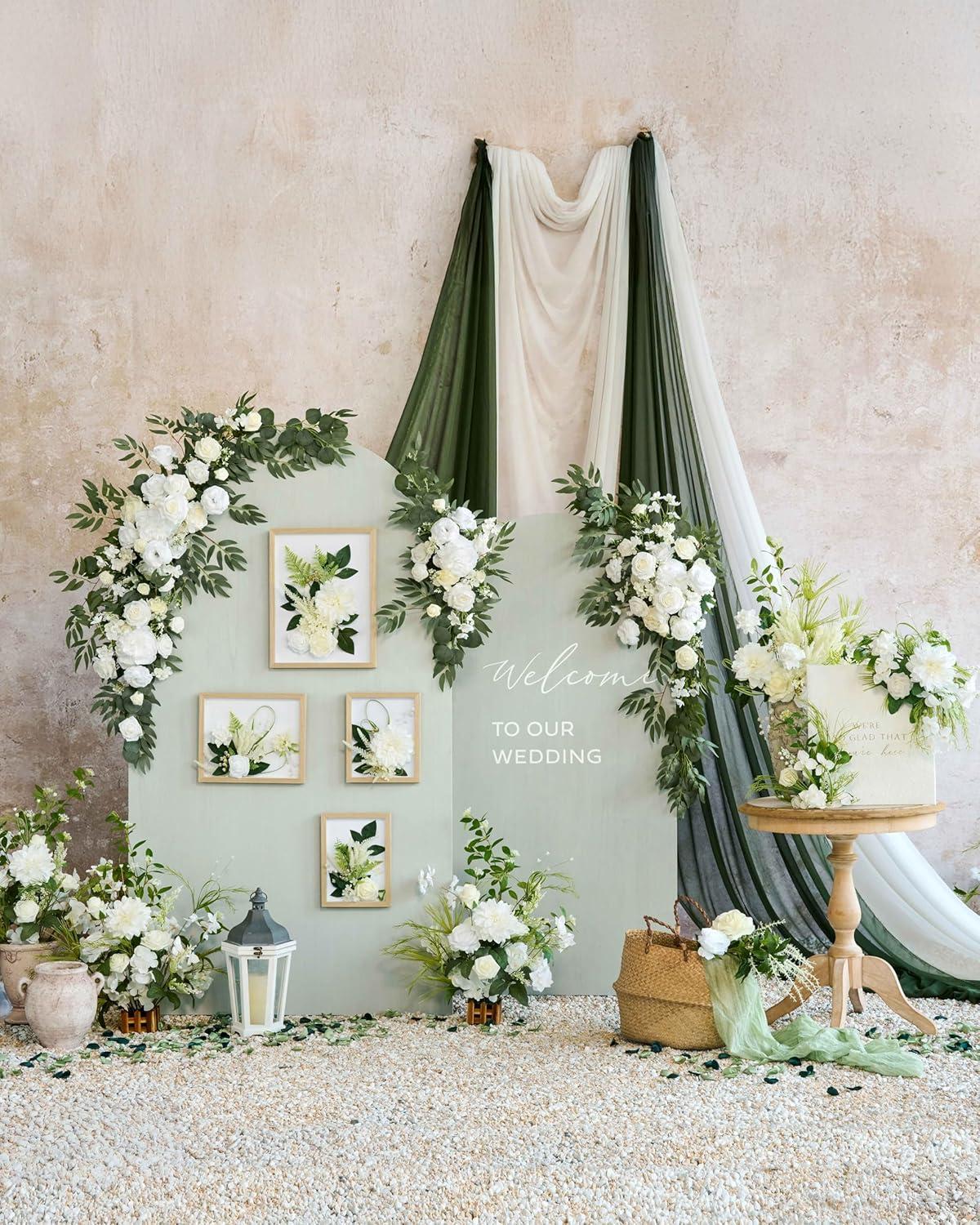 Ling’s Moment 12 Pack Wedding Venue Decor Package in White Green Color