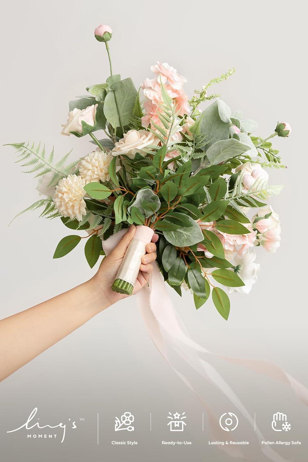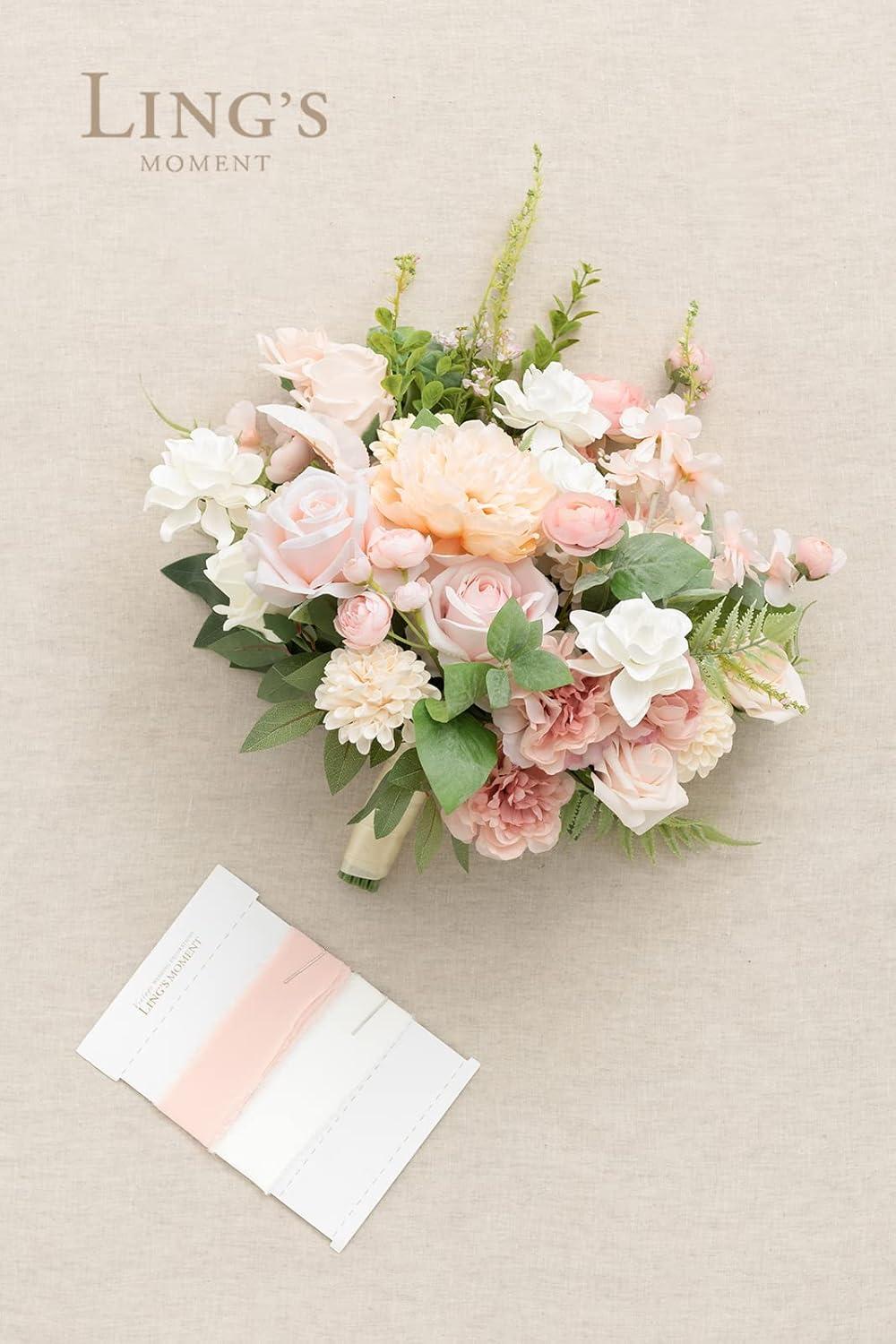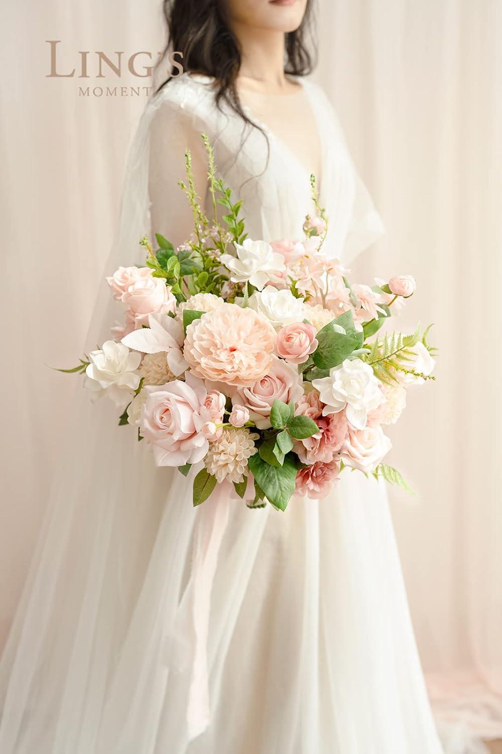 Ling’s Moment 13 Inch Artificial Wedding Bouquets for Bride Bridal Bouquet Bridesmaid Bouquet Tossing Bouquet for Wedding Ceremony Anniversary Bridal Shower(Pk-blush)