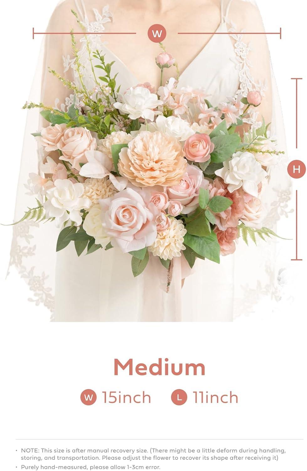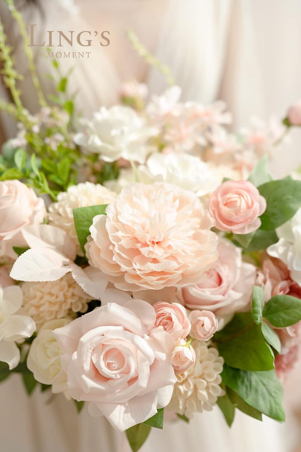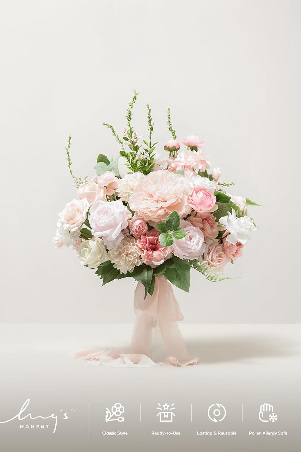 Ling's Moment 13 Inch Artificial Wedding Bouquets for Bride Bridal Bouquet Bridesmaid Bouquet Tossing Bouquet for Wedding Ceremony Anniversary Bridal Shower(Pk-blush)