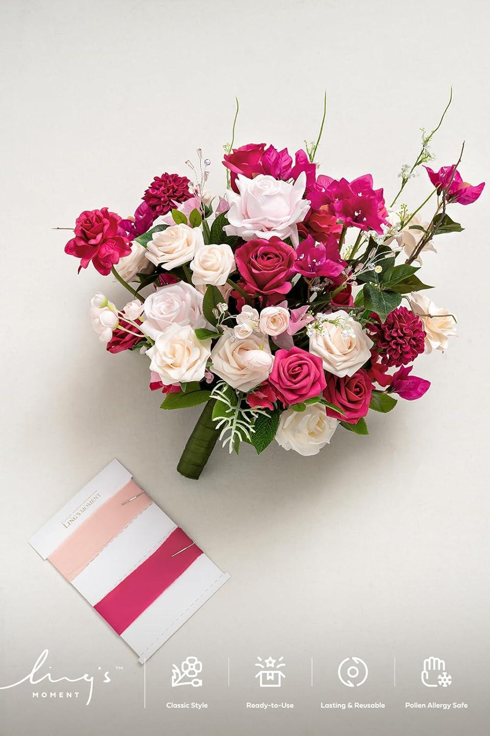 Ling’s Moment 13 Inch Artificial Wedding Bouquets for Bride Bridal Bouquet Bridesmaid Bouquet Tossing Bouquet for Wedding Ceremony Anniversary Bridal Shower(Red-blush & Pink 02)