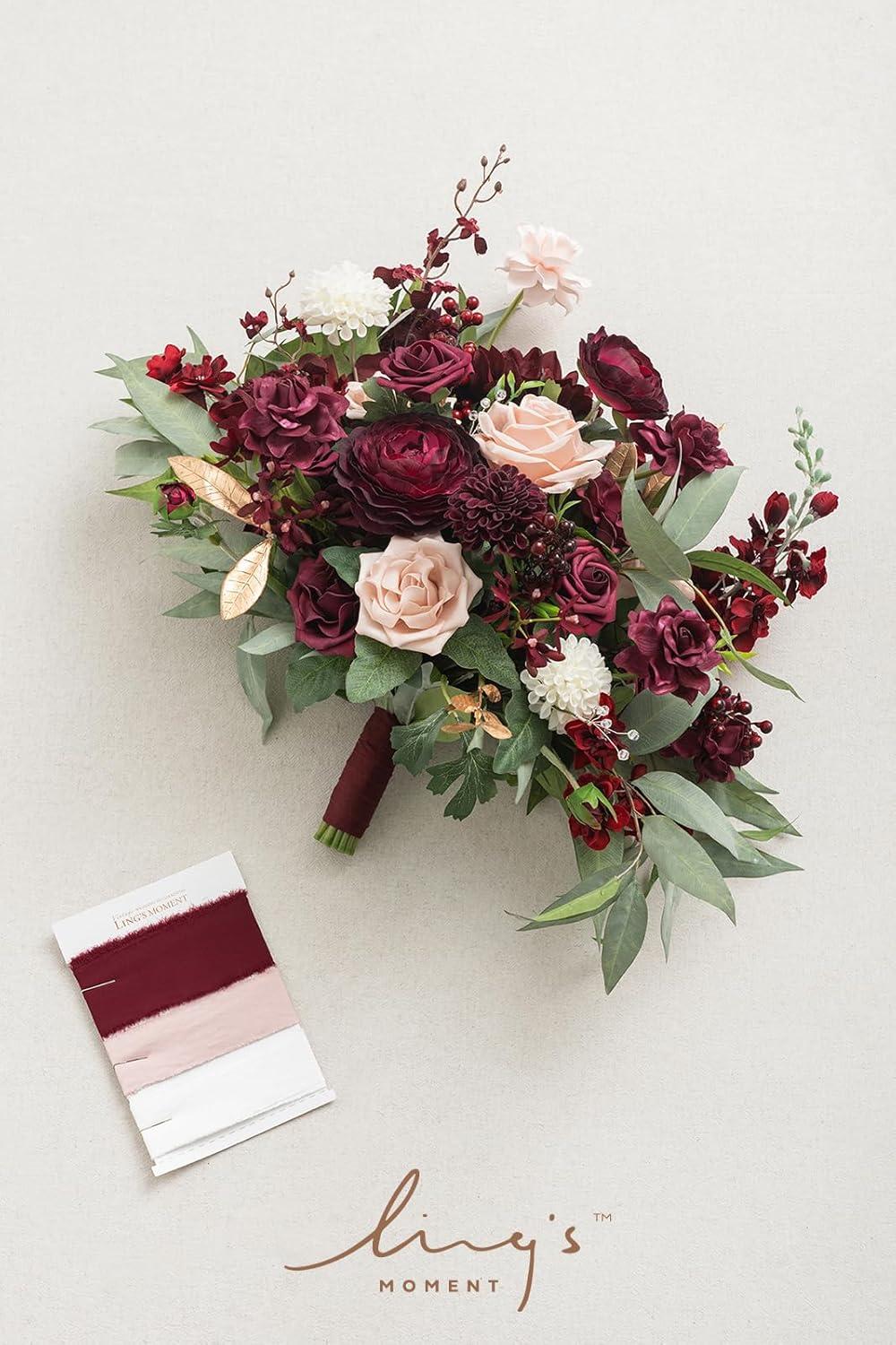 imageLings Moment 13 Inch Artificial Wedding Bouquets for Bride Bridal Bouquet Bridesmaid Bouquet Tossing Bouquet for Wedding Ceremony Anniversary Bridal ShowerRedmarsala  Blush