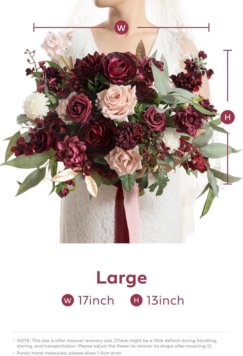Ling's Moment 13 Inch Artificial Wedding Bouquets for Bride Bridal Bouquet Bridesmaid Bouquet Tossing Bouquet for Wedding Ceremony Anniversary Bridal Shower(Red-marsala & Blush)