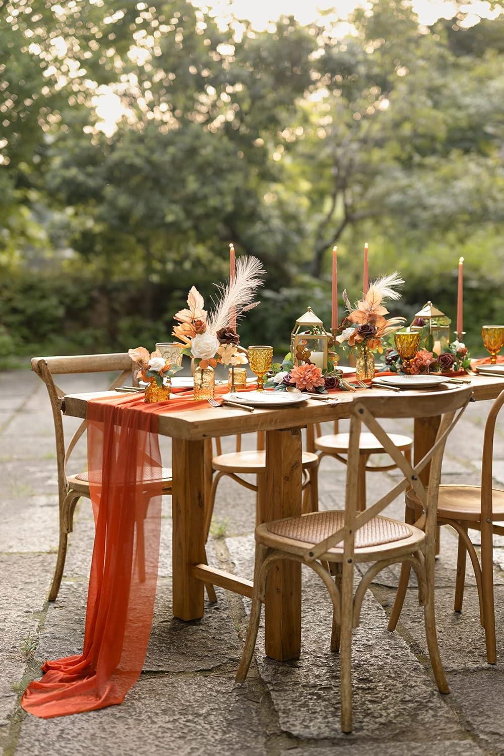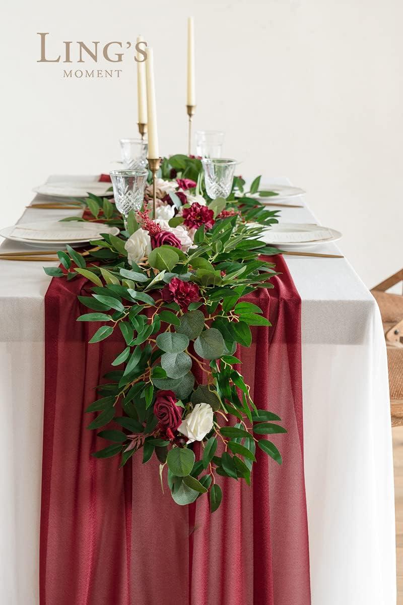 Reference: If you want to pool this table runner on the ground, we suggest adding at least 6ft to the size of your table. A 10ft table runner can be used on a 3-4ft in diameter round or 3-4ft rectangular table, and a 14ft table runner can be used on a 6-8ft round or rectangular table, which can help present the best decorative effect like the picture.
