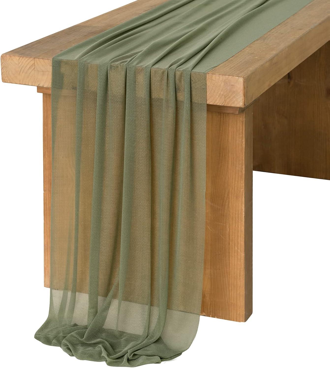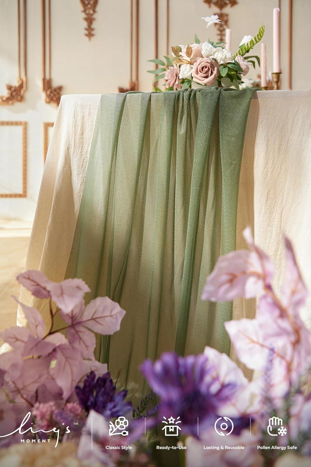 Ling’s Moment 14Ft Chiffon Table Runner, Sage Purple Sheer Extra Long Table Runners with Silver Sparkle for Rustic Boho Wedding Party Bridal Baby Shower Decorations(10ft × 1pc)