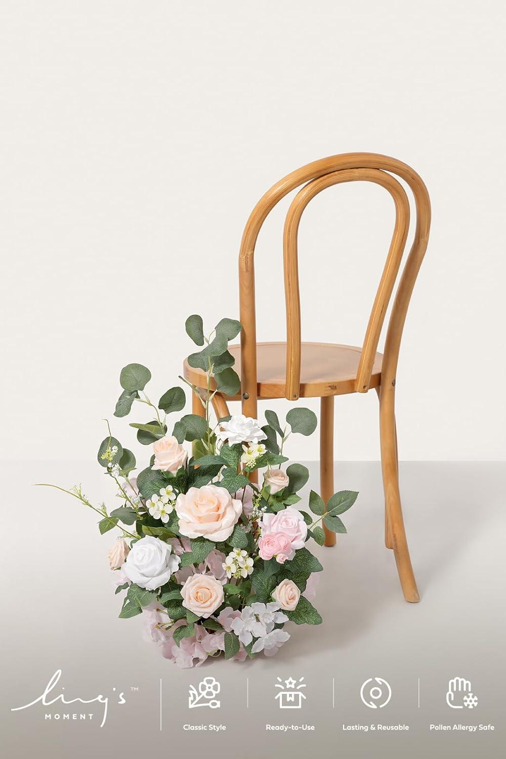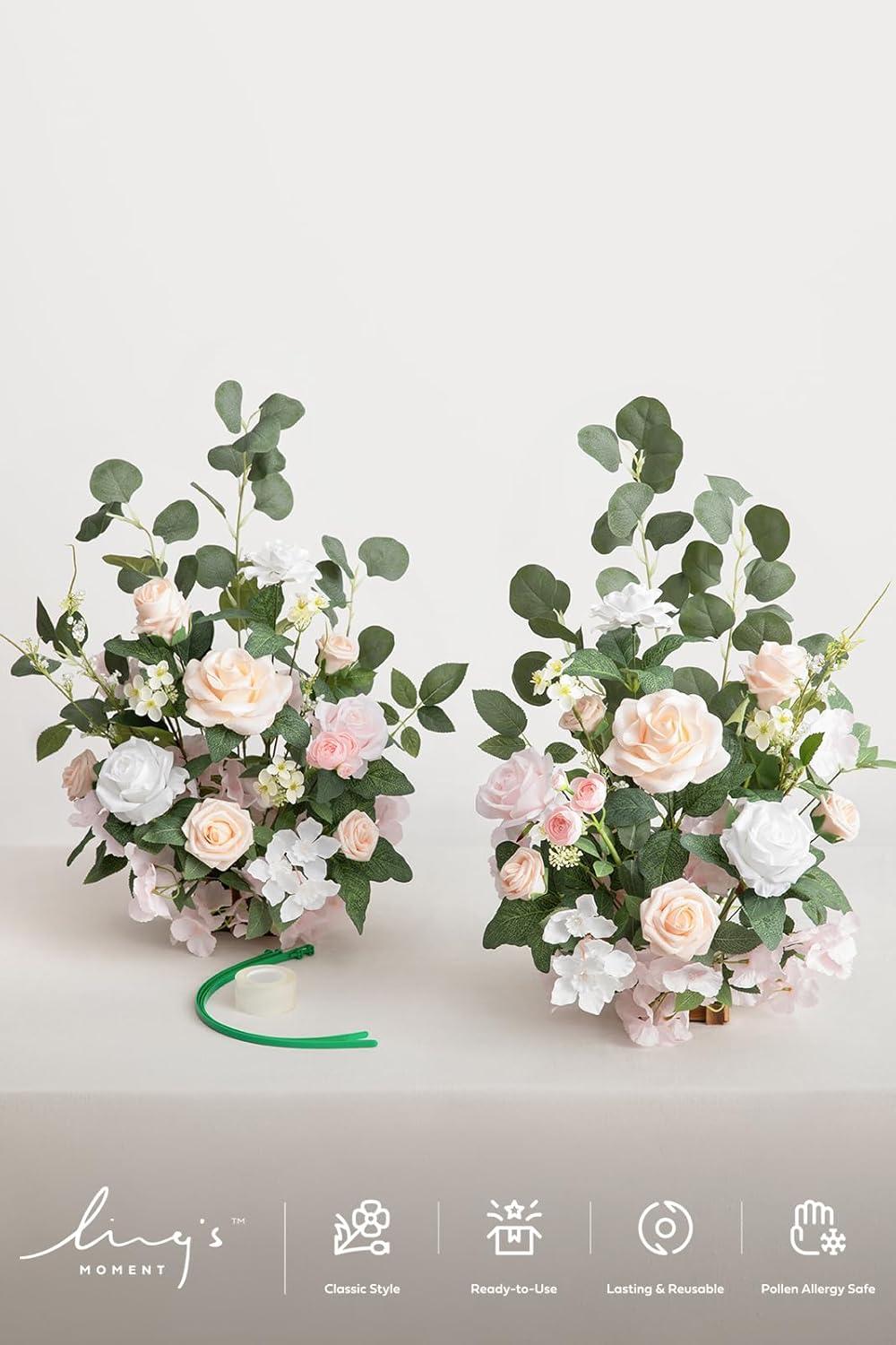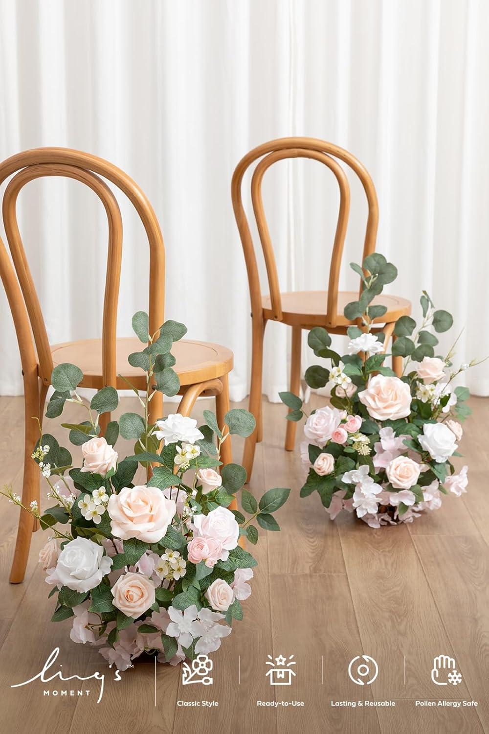 Ling’s moment 17.5″ Tall Standing Artificial Flowers Arrangements 2 pcs Wedding Aisle Runner Chair Decorations Mauve & Dusty Rose Centerpieces for Ceremony Reception Rose Floral Party Outdoor(Blush & Cream)