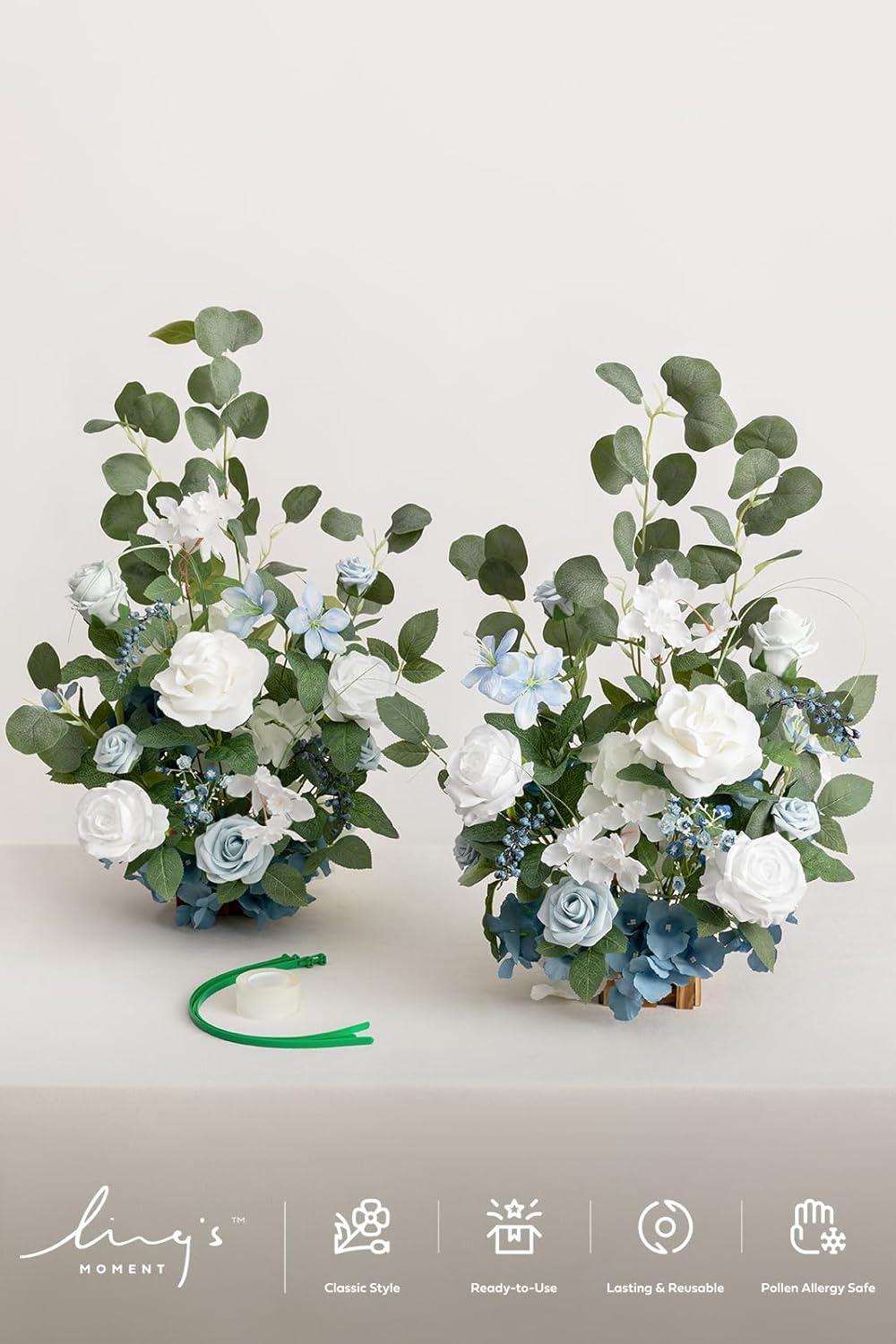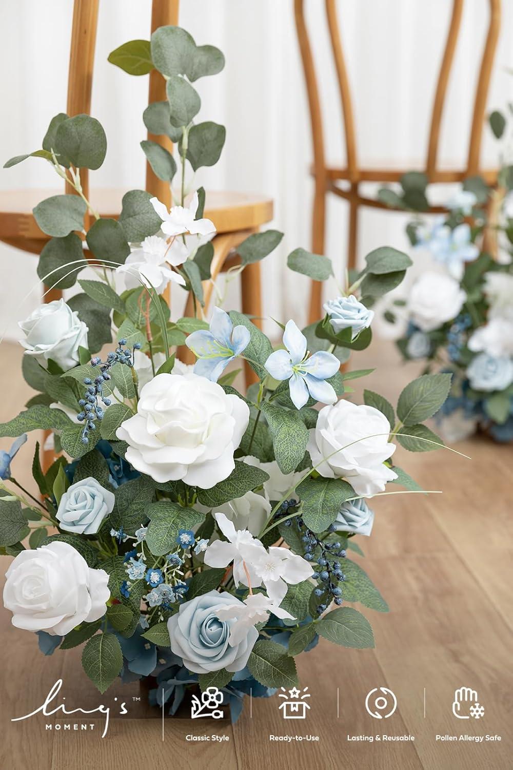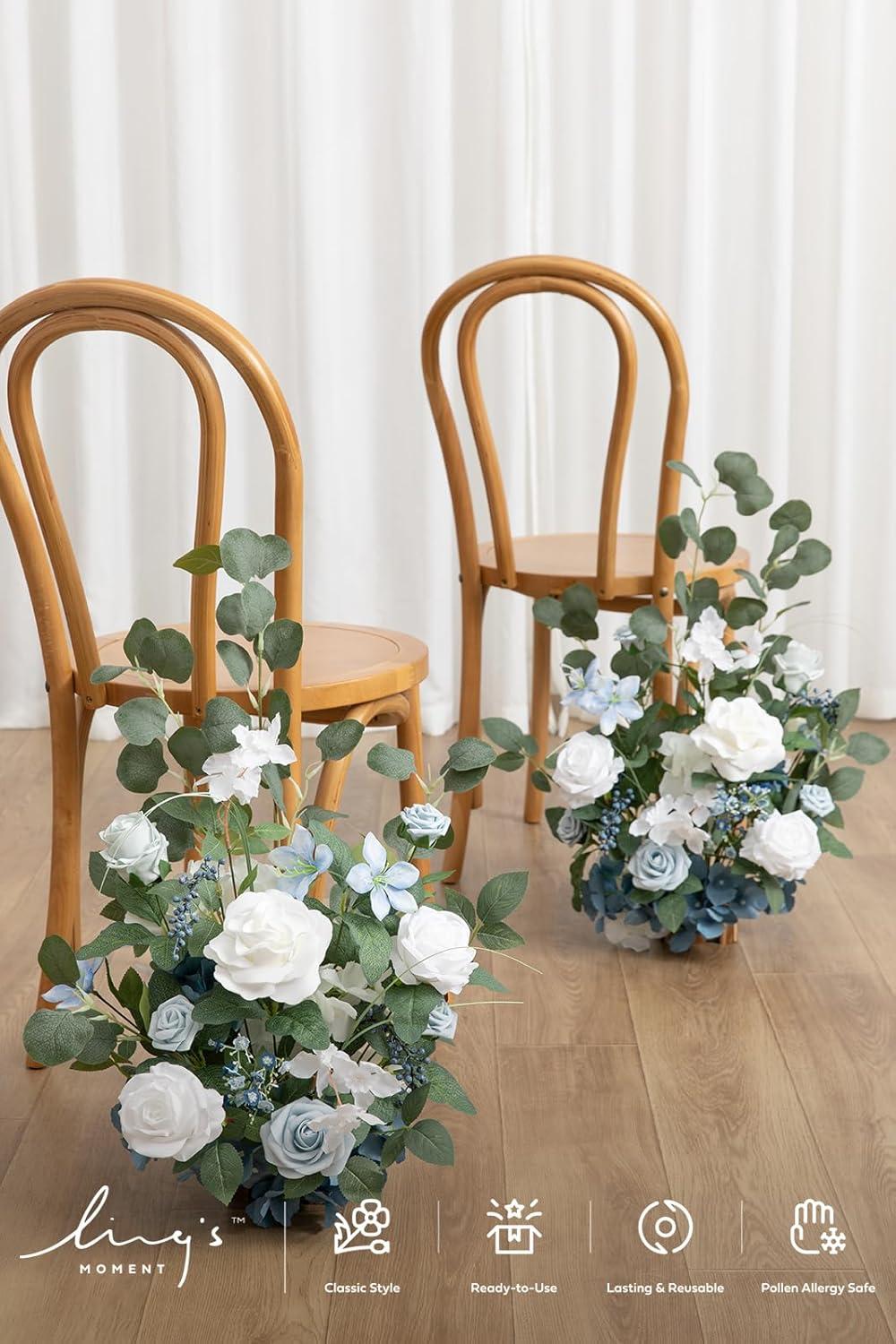 Ling’s moment 17.5″ Tall Standing Artificial Flowers Arrangements 2 pcs Wedding Aisle Runner Chair Decorations Mauve & Dusty Rose Centerpieces for Ceremony Reception Rose Floral Party Outdoor(Dusty Blue & Navy)