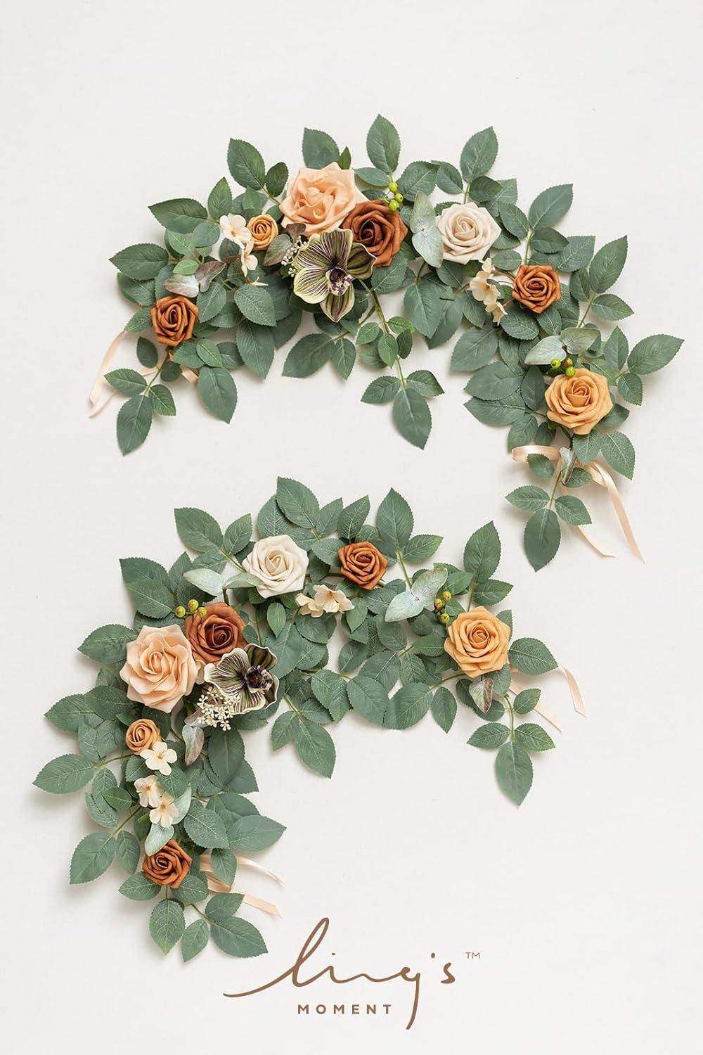 Ling’s moment 2Pack 2ft Artificial Flowers Garland Halloween Black & Orange Lantern Flower Centerpieces Wedding Aisle Decor Chair Flowers Arch Floral for Signs DIY Table Wall Window Cake Decoration(Brn-burnt Orange & Peach)