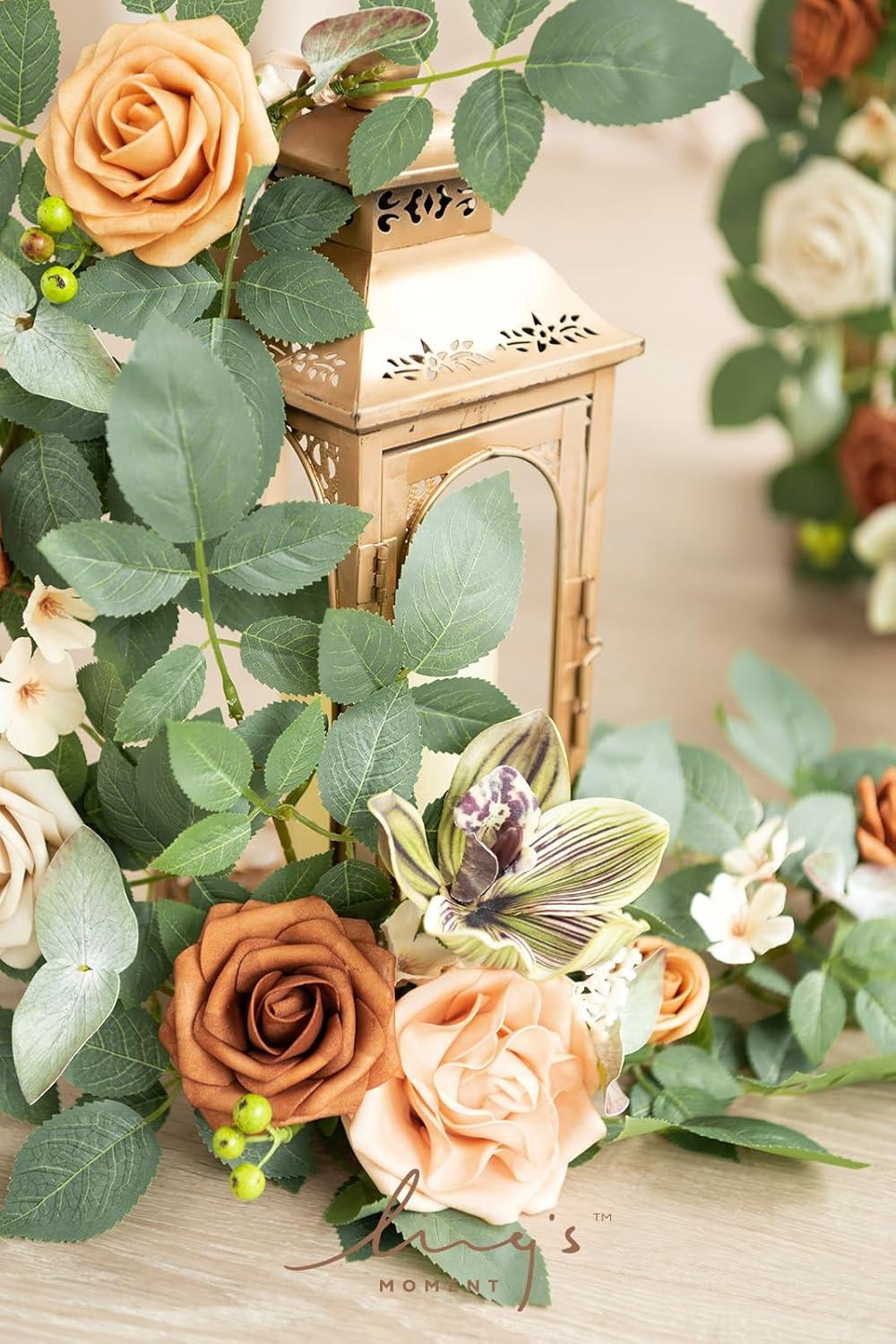 Ling's moment 2Pack 2ft Artificial Flowers Garland Halloween Black & Orange Lantern Flower Centerpieces Wedding Aisle Decor Chair Flowers Arch Floral for Signs DIY Table Wall Window Cake Decoration(Brn-burnt Orange & Peach)