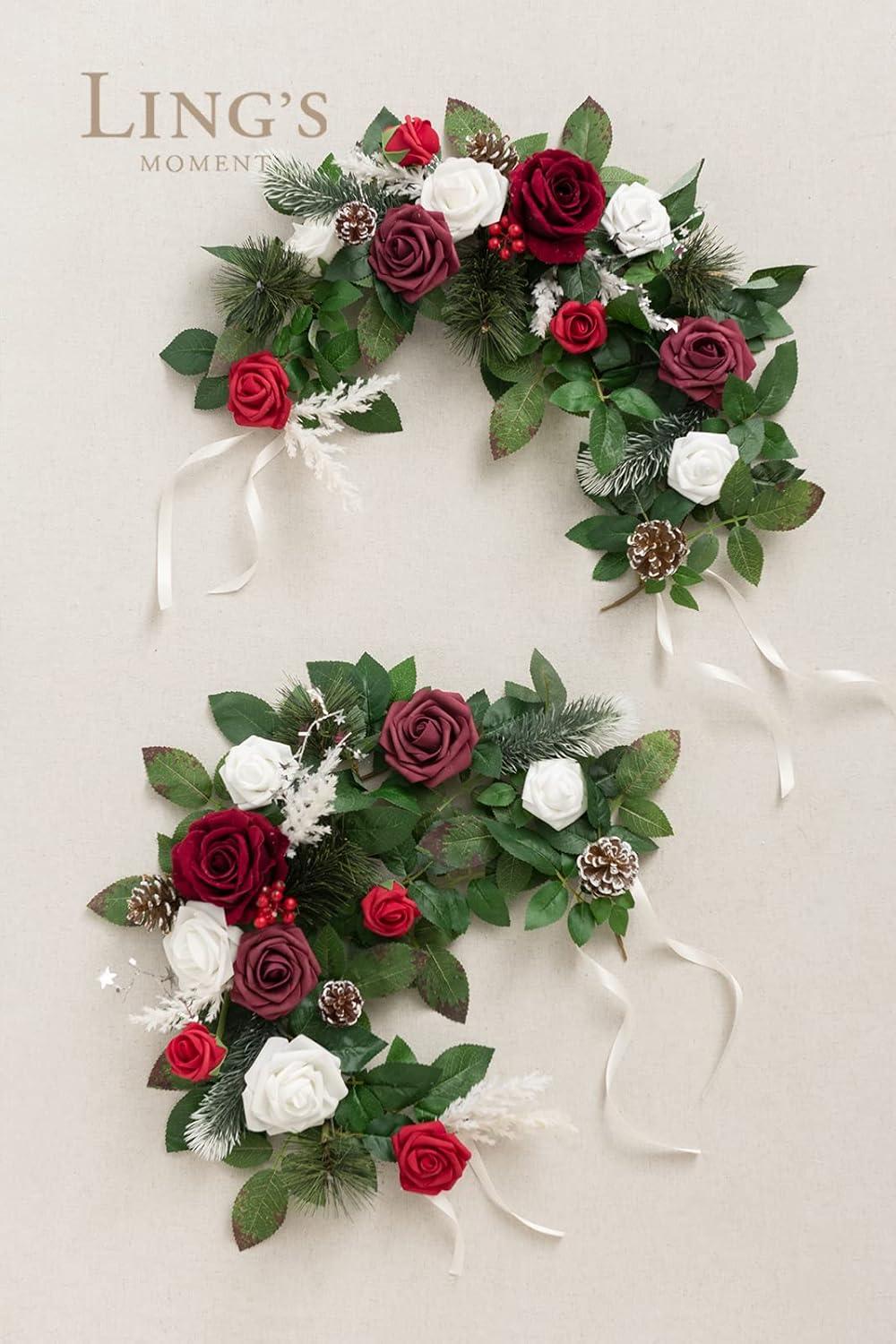 Ling’s moment 2Pack 2ft Dusty Rose Artificial Flower Garland Lantern Flower Centerpieces Wedding Aisle Decor Chair Flowers Arch Floral for Signs DIY Table Wall Window Cake Decoration(Red-red & Sparkle)