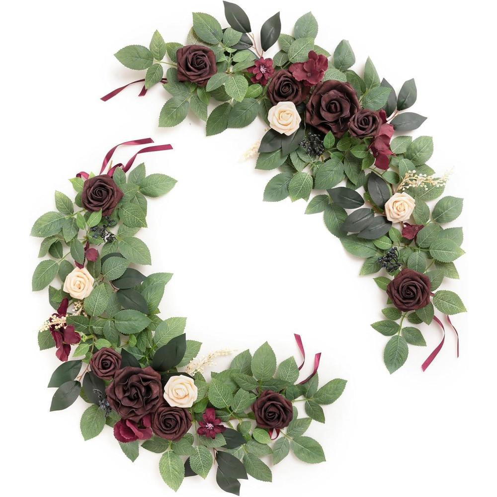 Ling's moment 2Pack 2ft Ivory Artificial Flowers Garland White & Beige Lantern Flower Centerpieces Wedding Aisle Decor Chair Flowers Arch Floral for Signs DIY Table Wall Window Cake Decoration(Red-bordeaux Red)