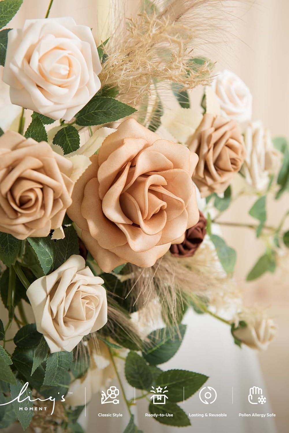 Ling’s moment 2PCS Artificial Flower Garland Light Purple Floral Swags Wedding Arch Flowers Lilac Table Centerpieces Decoration Rose Garlands Greenery Arrangements for Sweetheart/Head Table Decor(Brn-beige)