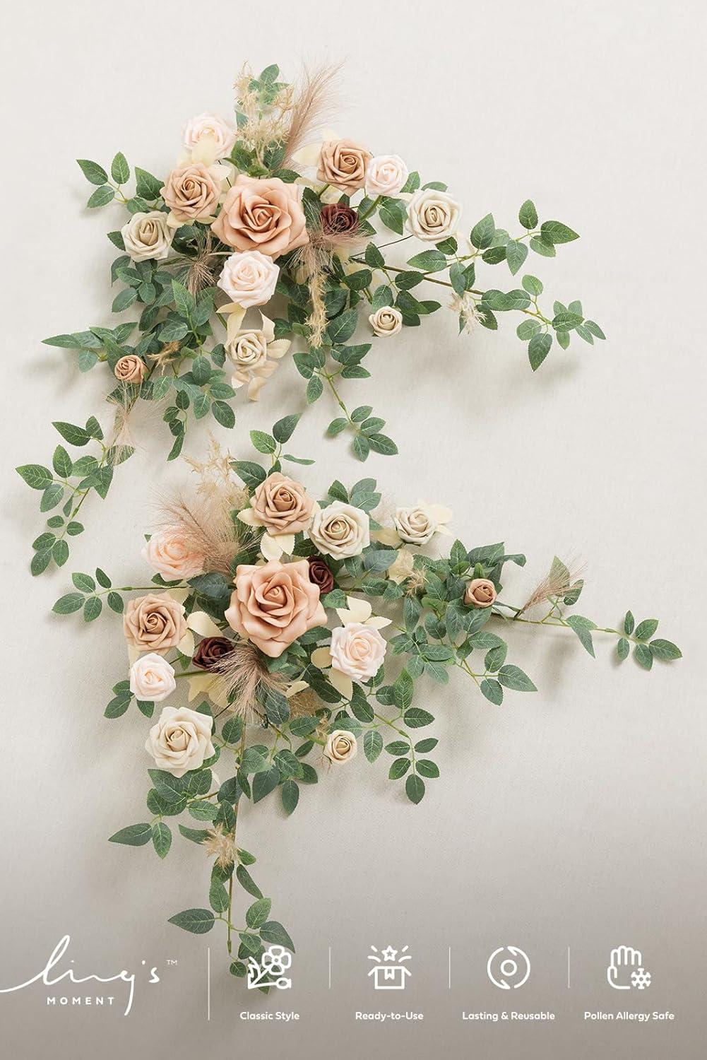 Ling’s moment 2PCS Artificial Flower Garland Light Purple Floral Swags Wedding Arch Flowers Lilac Table Centerpieces Decoration Rose Garlands Greenery Arrangements for Sweetheart/Head Table Decor(Brn-apricot & Peach)