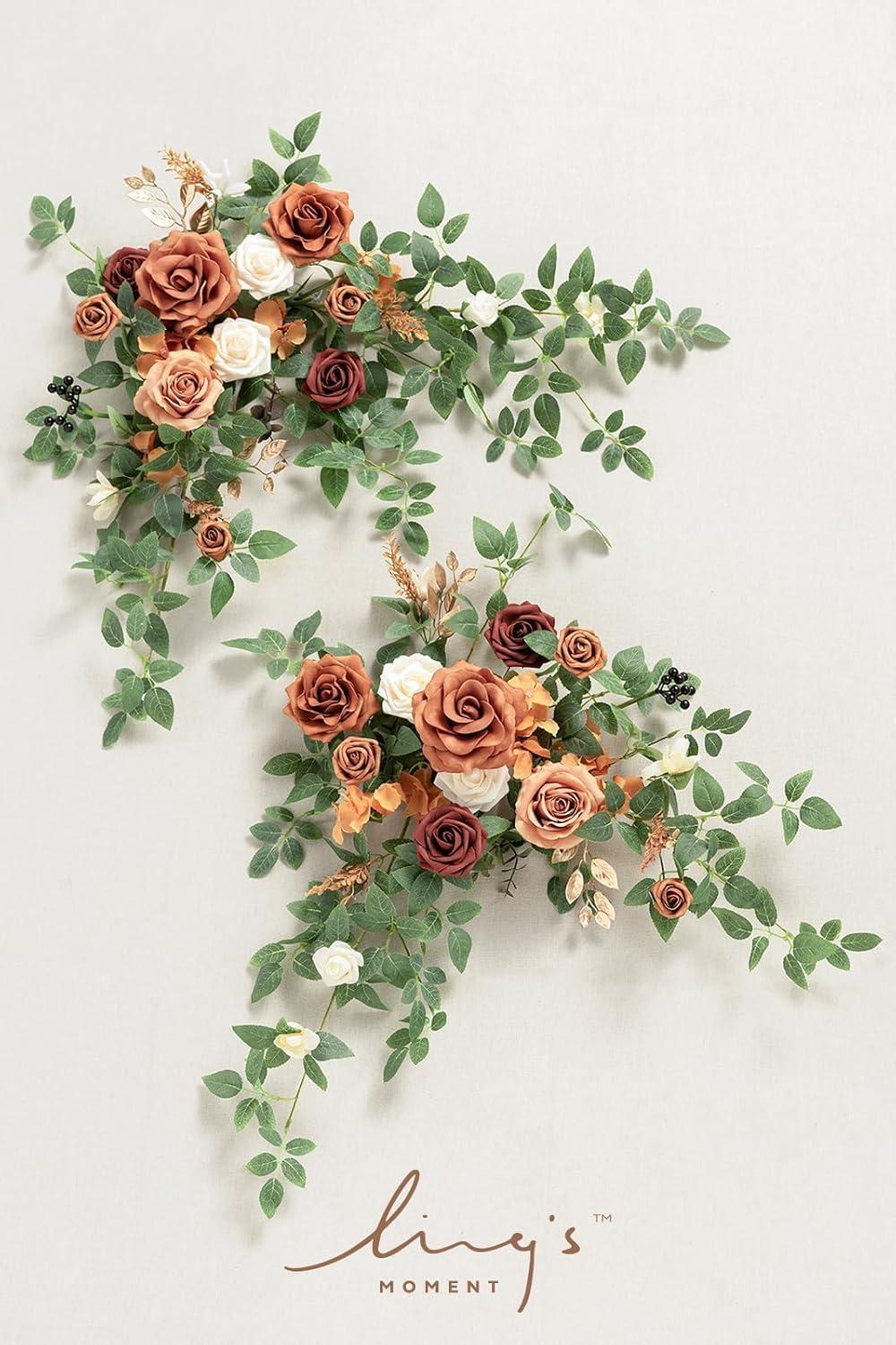 Ling's moment 2PCS Artificial Flower Garland Light Purple Floral Swags Wedding Arch Flowers Lilac Table Centerpieces Decoration Rose Garlands Greenery Arrangements for Sweetheart/Head Table Decor(Or-terracotta)