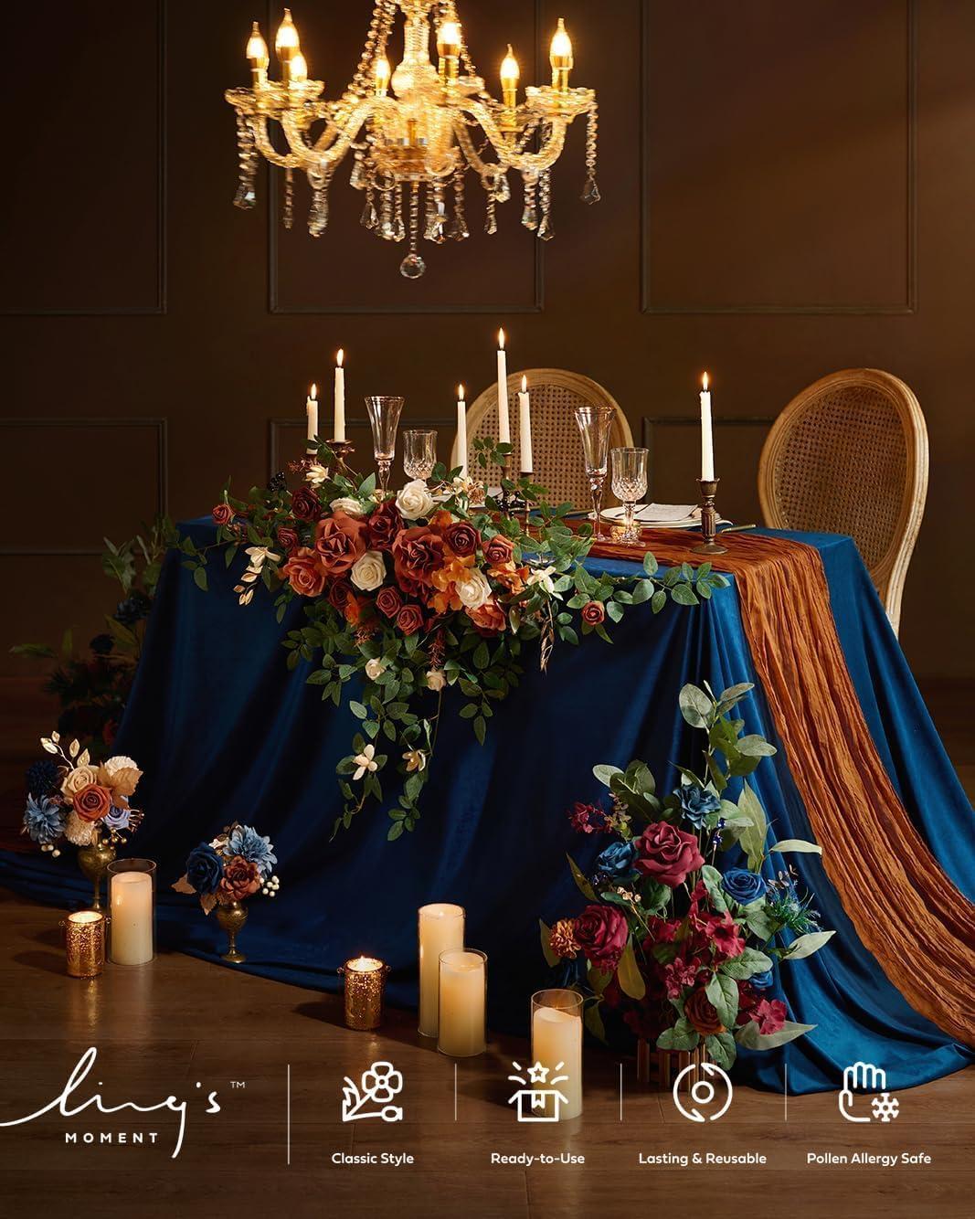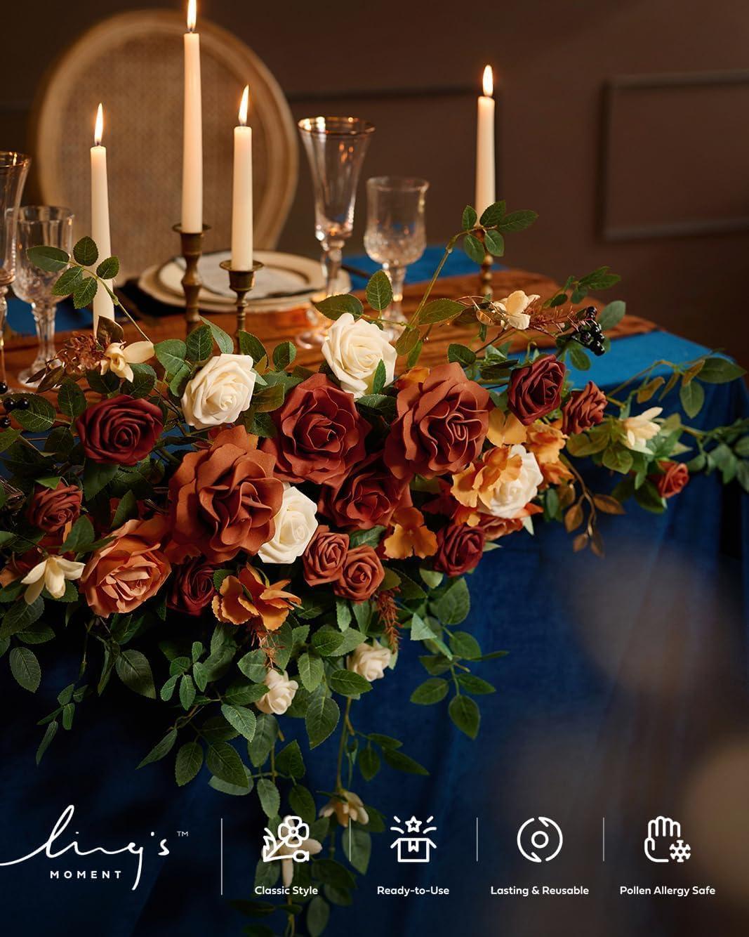 Ling’s moment 2PCS Artificial Flower Garland Light Purple Floral Swags Wedding Arch Flowers Lilac Table Centerpieces Decoration Rose Garlands Greenery Arrangements for Sweetheart/Head Table Decor(Or-teal & Terracotta)