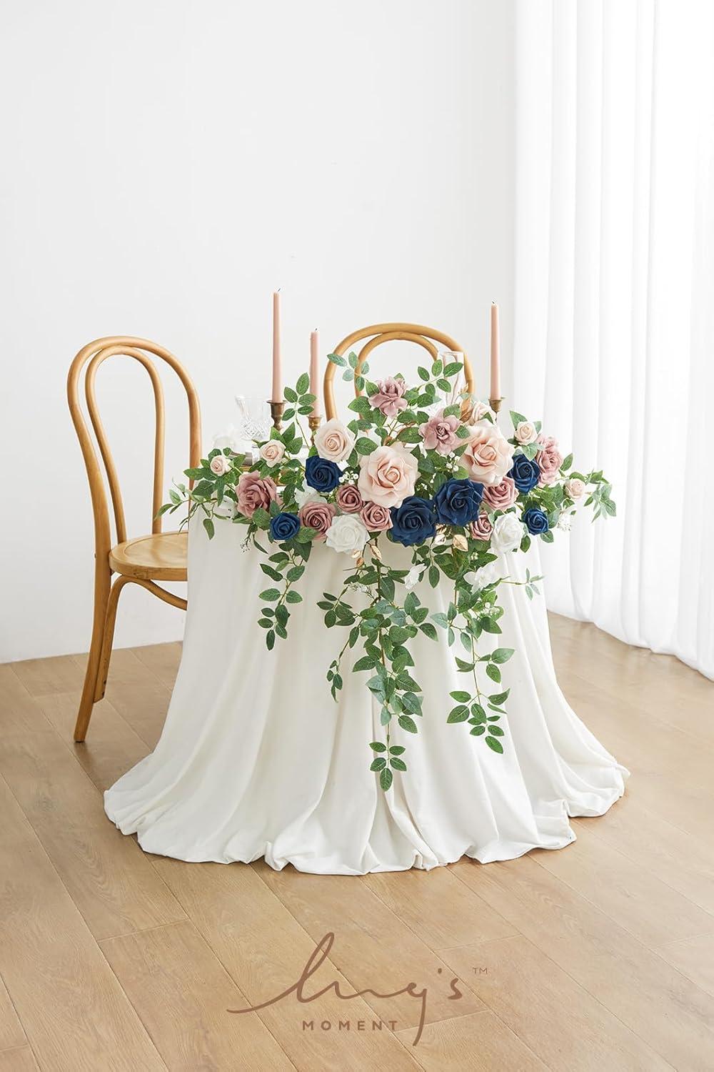 Floral Pile Centerpiece: This Floral arrangement is designed for Sweetheart/ Head table decor, and its floral pile is design-friendly for any other use, such as decor for bride and groom chair, simple arch, wedding car, home mirror, window, and garden gazebo. Available for recycling use after the wedding, very friendly to environmental protection.