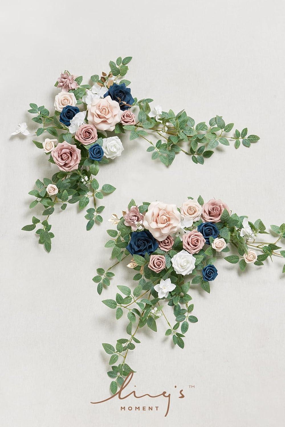 Ling's moment 2PCS Artificial Flower Garland Light Purple Floral Swags Wedding Arch Flowers Lilac Table Centerpieces Decoration Rose Garlands Greenery Arrangements for Sweetheart/Head Table Decor(Pk-dusty Rose & Navy)