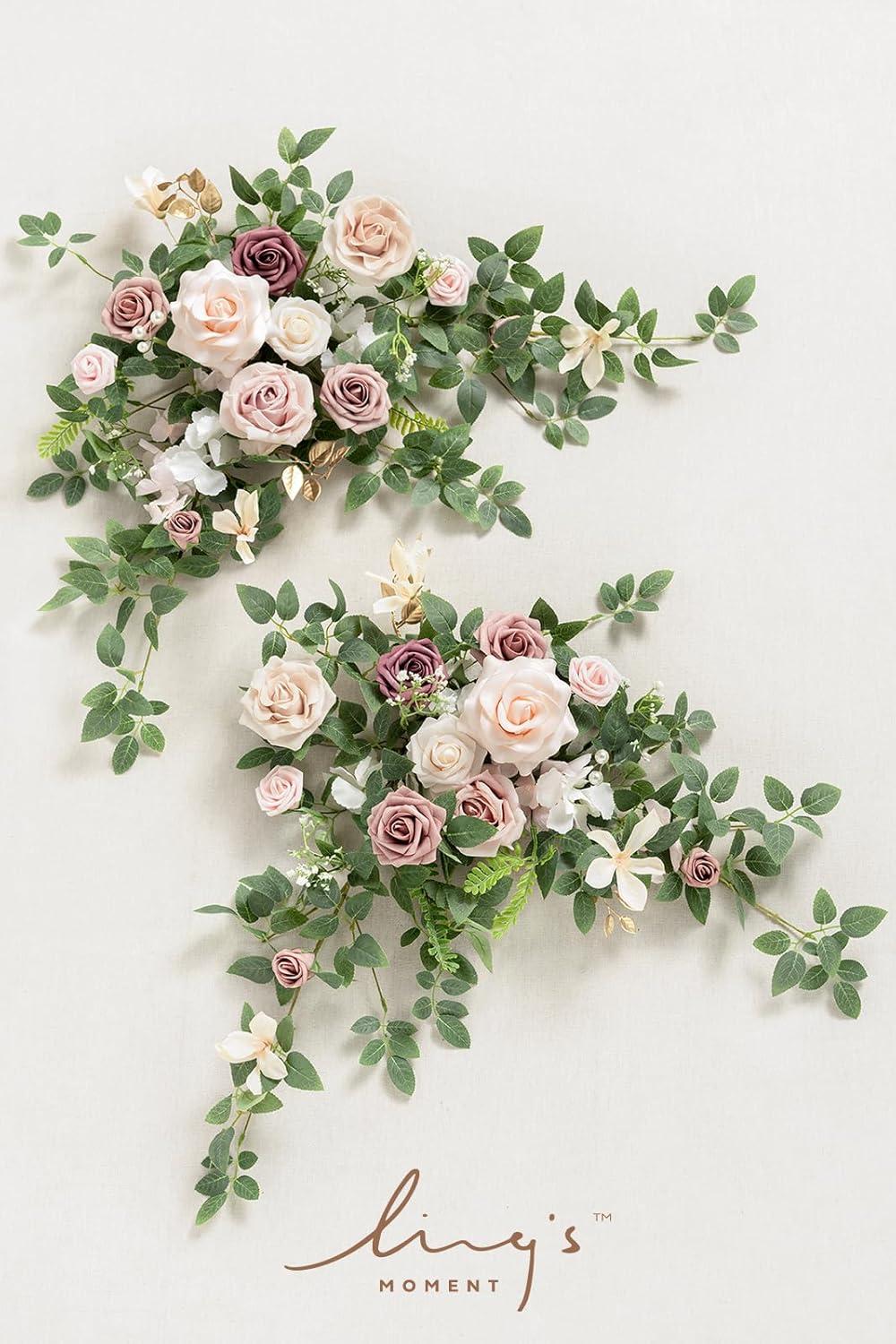 Ling's moment 2PCS Artificial Flower Garland Light Purple Floral Swags Wedding Arch Flowers Lilac Table Centerpieces Decoration Rose Garlands Greenery Arrangements for Sweetheart/Head Table Decor(Pk-dusty Rose)