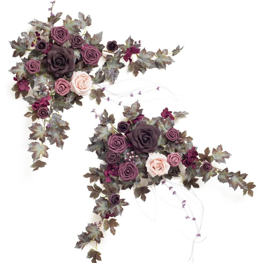 Ling's moment 2PCS Artificial Flower Garland Light Purple Floral Swags Wedding Arch Flowers Lilac Table Centerpieces Decoration Rose Garlands Greenery Arrangements for Sweetheart/Head Table Decor(Prpl-deep Plum)