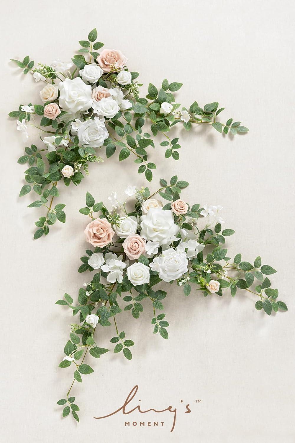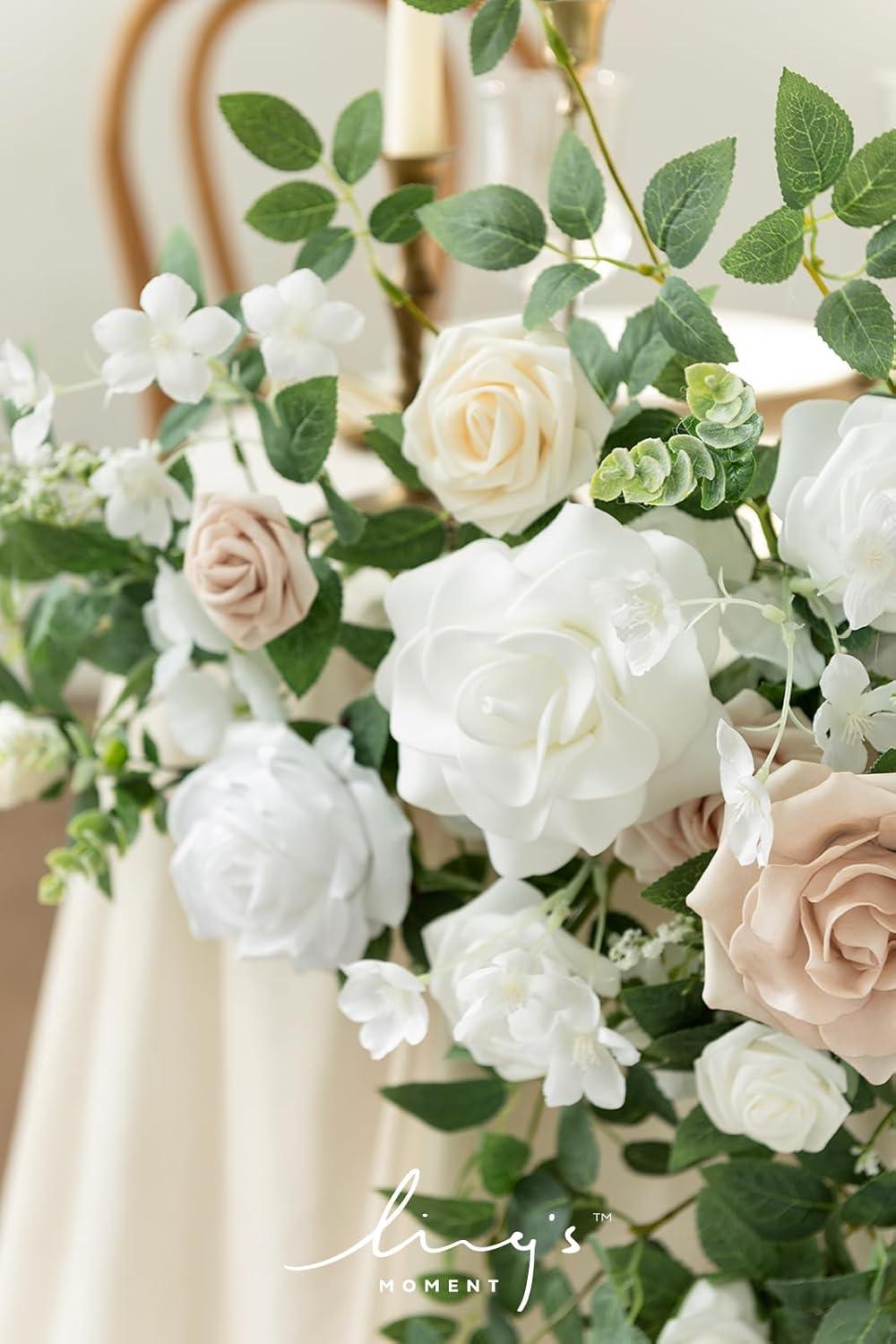 Ling’s moment 2PCS Artificial Flower Garland Light Purple Floral Swags Wedding Arch Flowers Lilac Table Centerpieces Decoration Rose Garlands Greenery Arrangements for Sweetheart/Head Table Decor(Wht-green & White)