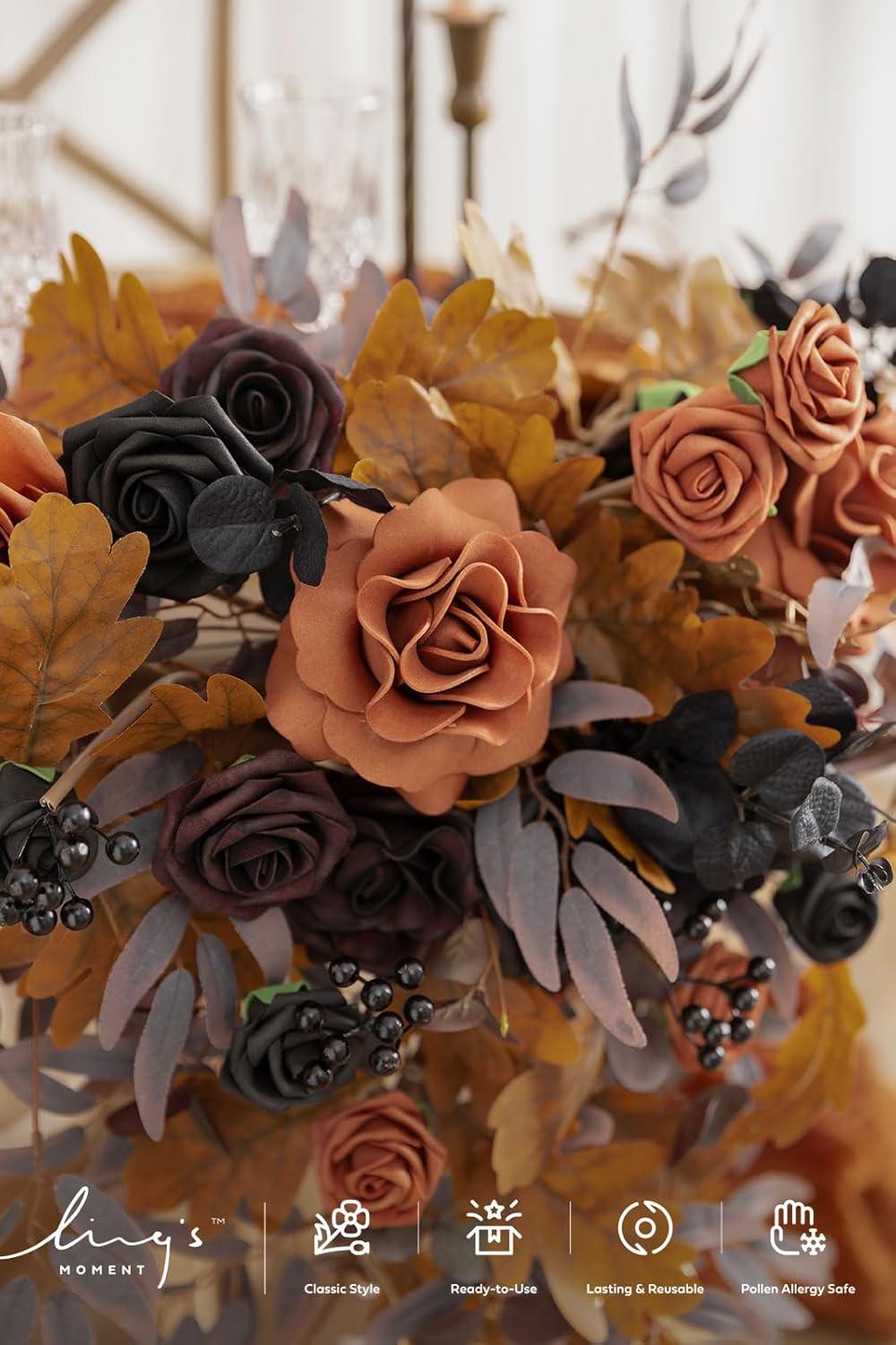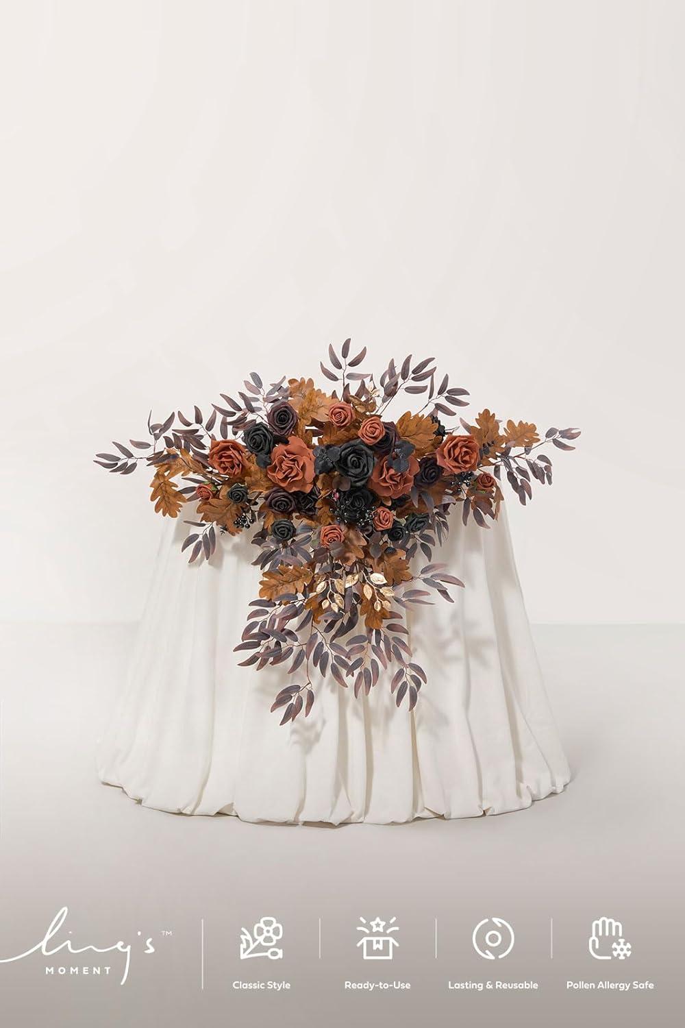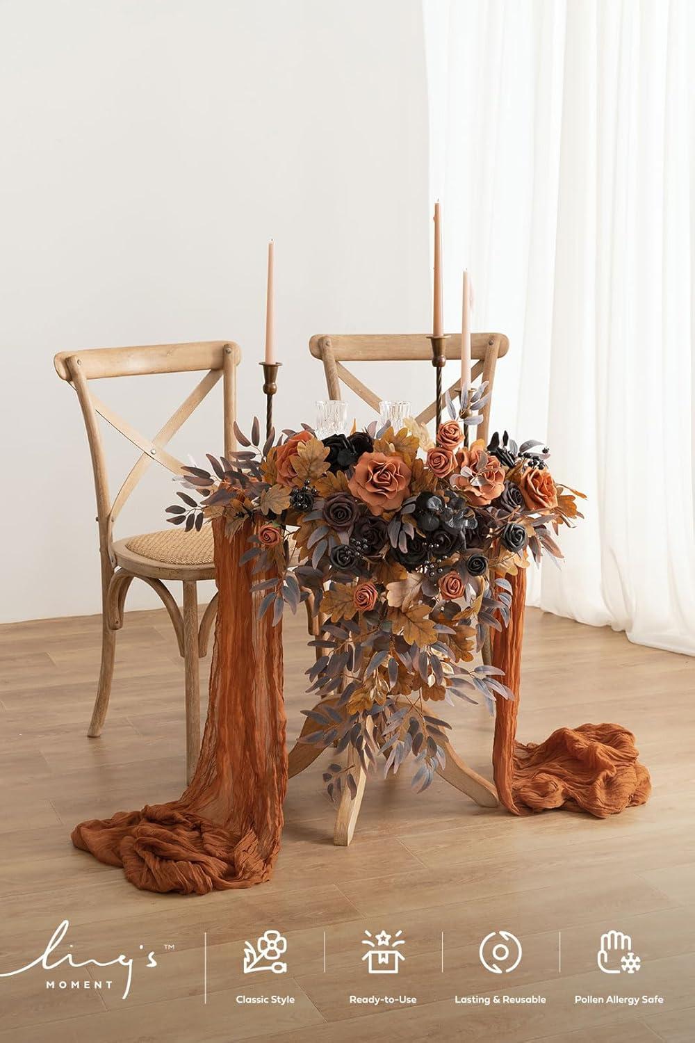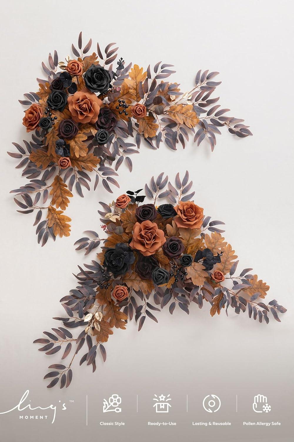 imageLings moment 2PCS Black Orange Artificial Flower Swags Wedding Arch Flowers Floral Garland Halloween Table Centerpieces Rose Arrangements for Sweetheart Easel Wall Entryway Board Backdrop DecorOrteal  Terracotta