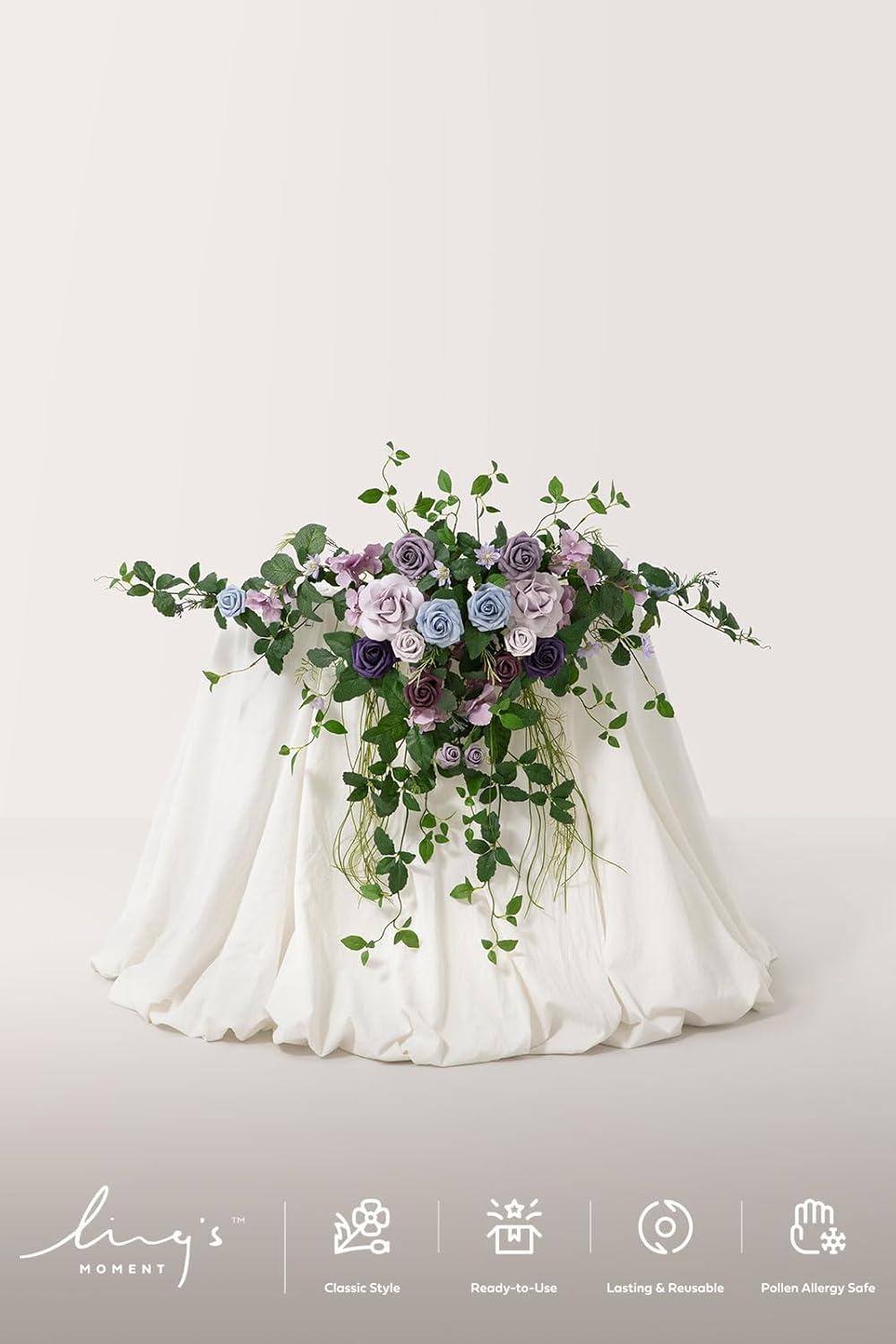 Floral Pile Centerpiece: This Floral arrangement is designed for Sweetheart/ Head table decor, and its floral pile is design-friendly for any other use, such as decor for bride and groom chair, simple arch, wedding car, home mirror, window, and garden gazebo. Available for recycling use after the wedding, very friendly to environmental protection.