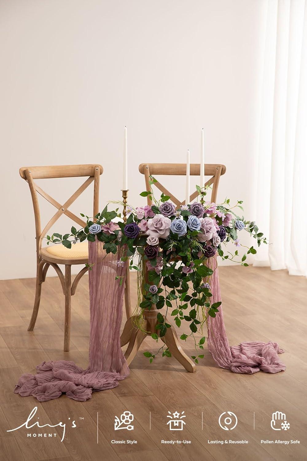 Ling’s moment 2PCS Black Orange Artificial Flower Swags Wedding Arch Flowers Floral Garland Halloween Table Centerpieces Rose Arrangements for Sweetheart Easel Wall Entryway Board Backdrop Decor(Prpl-deep Plum)
