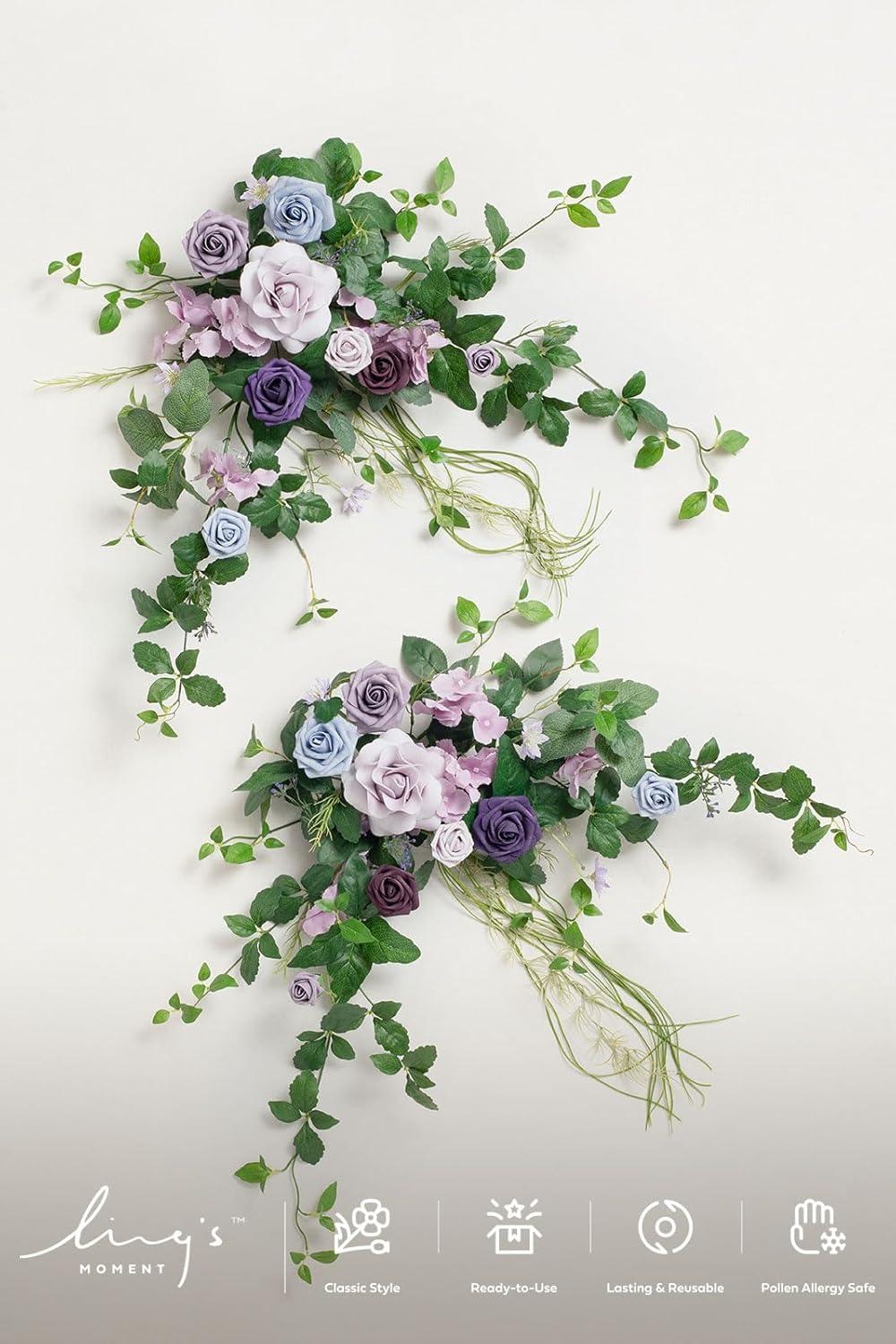 Ling’s moment 2PCS Black Orange Artificial Flower Swags Wedding Arch Flowers Floral Garland Halloween Table Centerpieces Rose Arrangements for Sweetheart Easel Wall Entryway Board Backdrop Decor(Prpl-lilac & Gold)