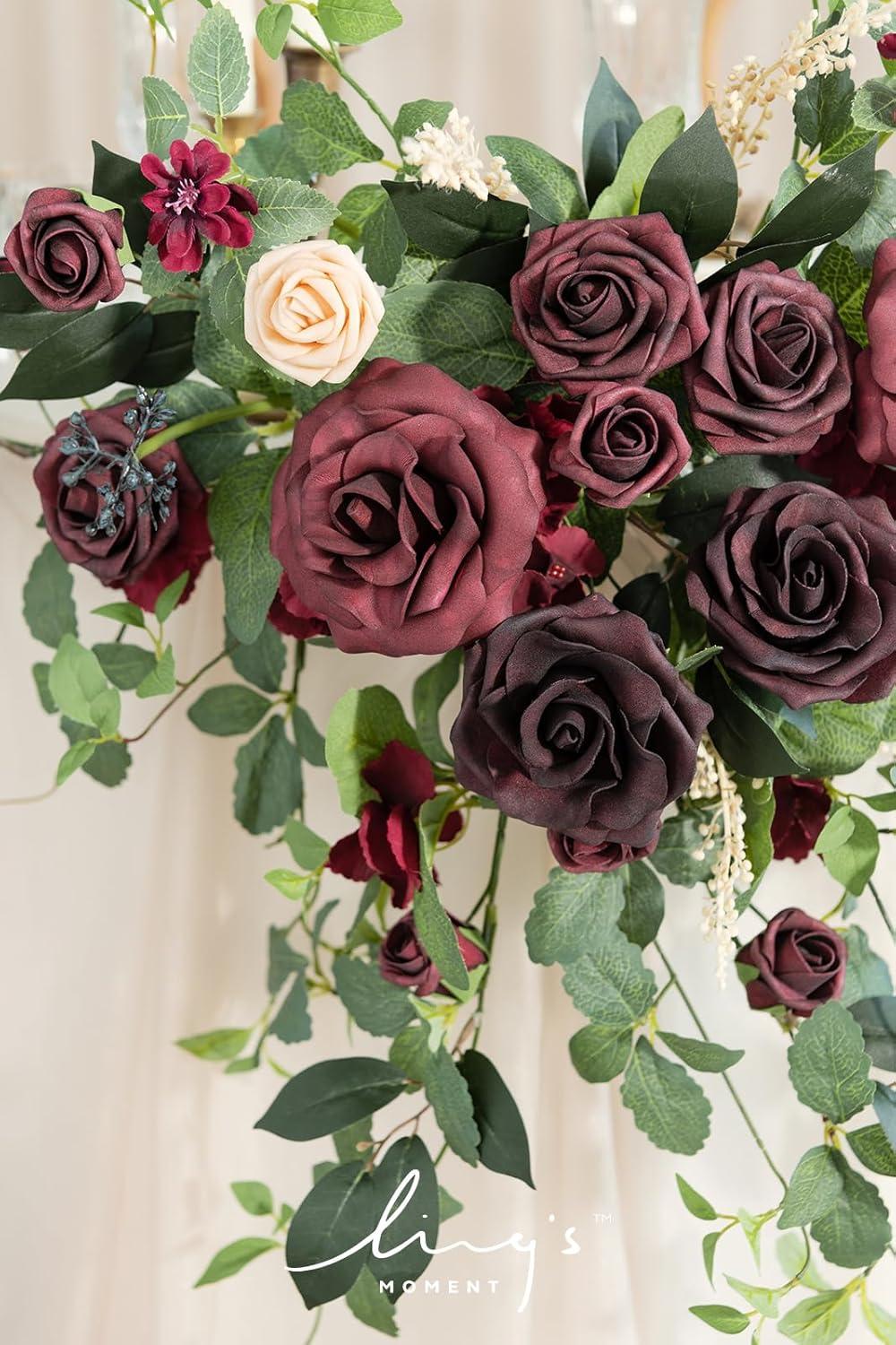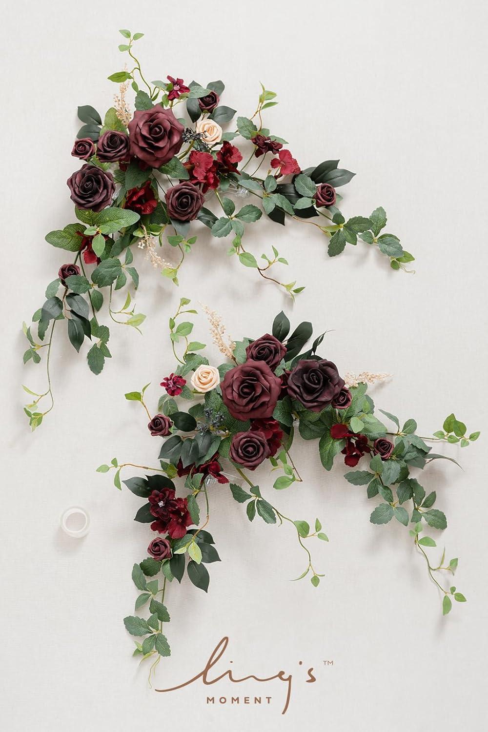 imageLings moment 2PCS Black Orange Artificial Flower Swags Wedding Arch Flowers Floral Garland Halloween Table Centerpieces Rose Arrangements for Sweetheart Easel Wall Entryway Board Backdrop DecorRedbordeaux Red
