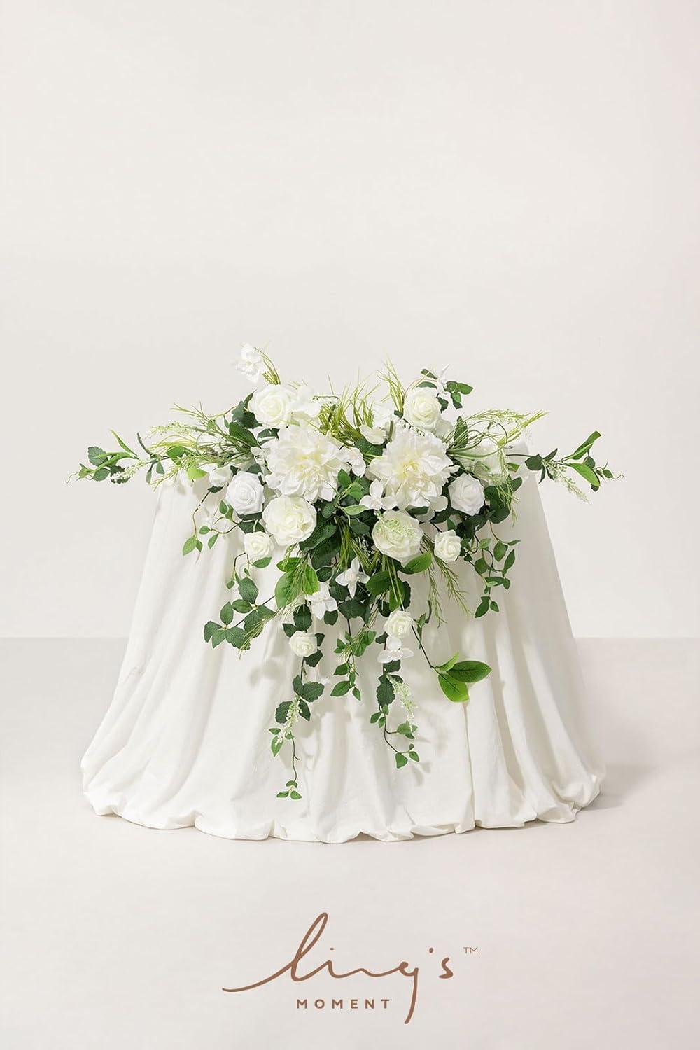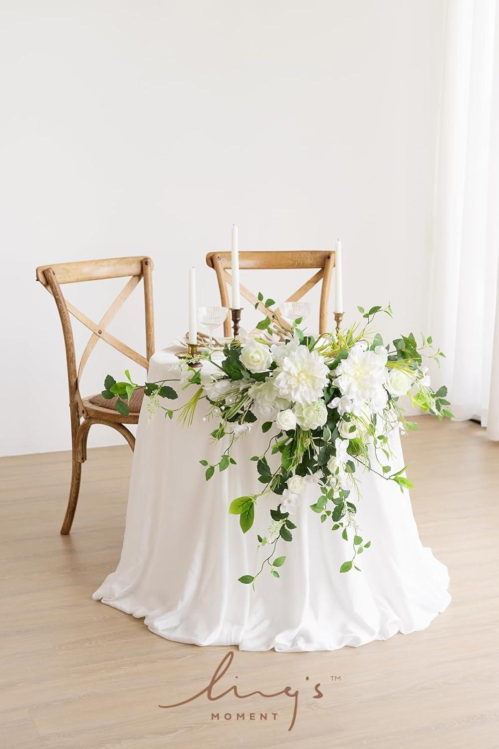 Floral Pile Centerpiece: This Floral arrangement is designed for Sweetheart/ Head table decor, and its floral pile is design-friendly for any other use, such as decor for bride and groom chair, simple arch, wedding car, home mirror, window, and garden gazebo. Available for recycling use after the wedding, very friendly to environmental protection.