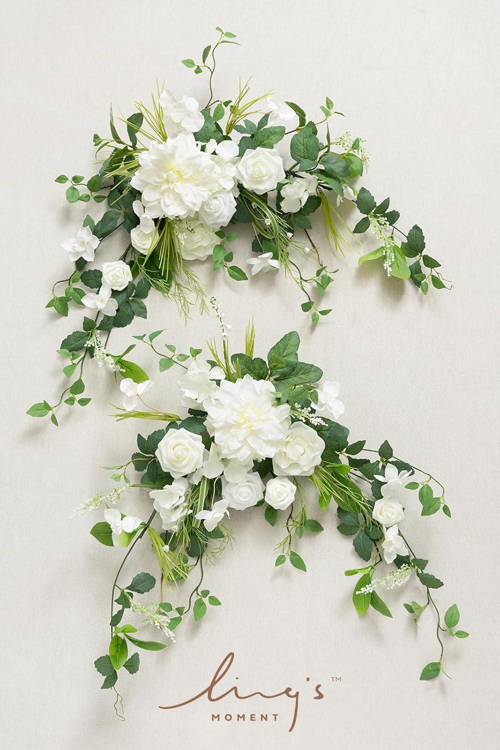 Ling’s moment 2PCS Black Orange Artificial Flower Swags Wedding Arch Flowers Floral Garland Halloween Table Centerpieces Rose Arrangements for Sweetheart Easel Wall Entryway Board Backdrop Decor(Wht-green & White)