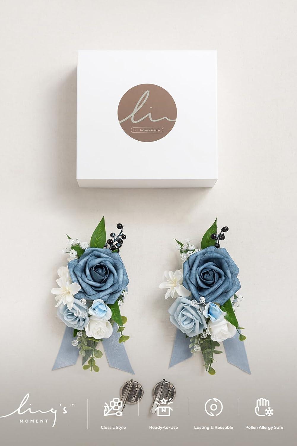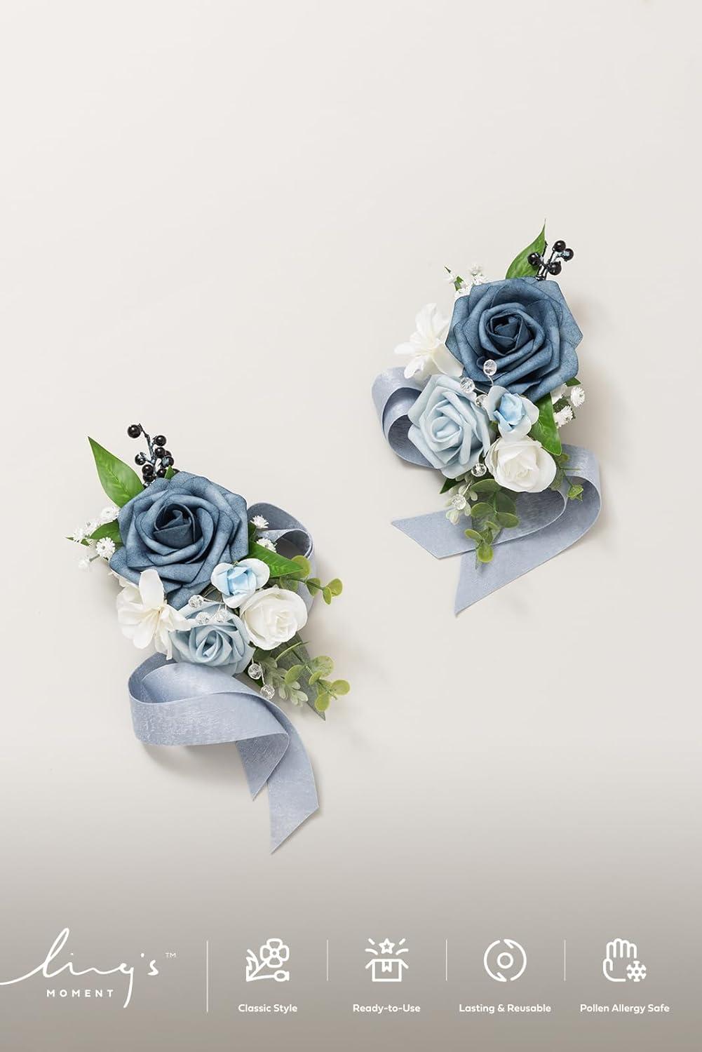 【Package and Size】Set of 2 corsages, each flower arrangement is approx. 4.75″ dia. With white lace corsage wristlet, easy to wear, comfortable, lovely and firm, fits any wrist size.