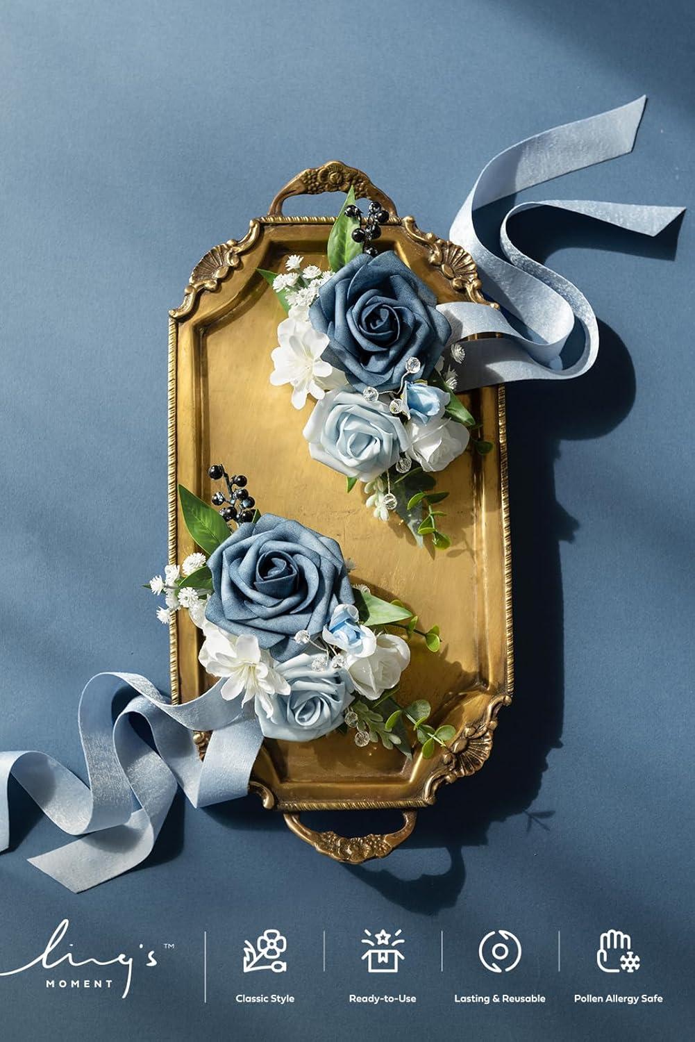Ling's Moment 2pcs Prom Wrist/Shoulder Corsage Artificial Flower, Girl/Mother Homecoming/Wedding Corsage Wristlet Décor, etc. Black Gothic Burgundy(Blu-blue)