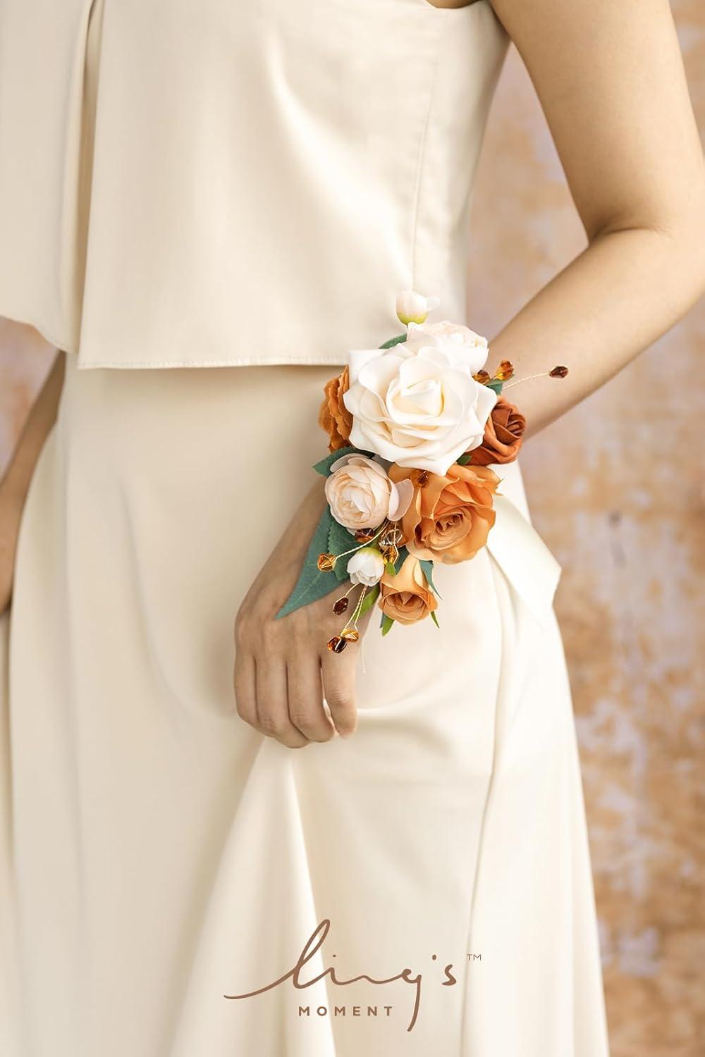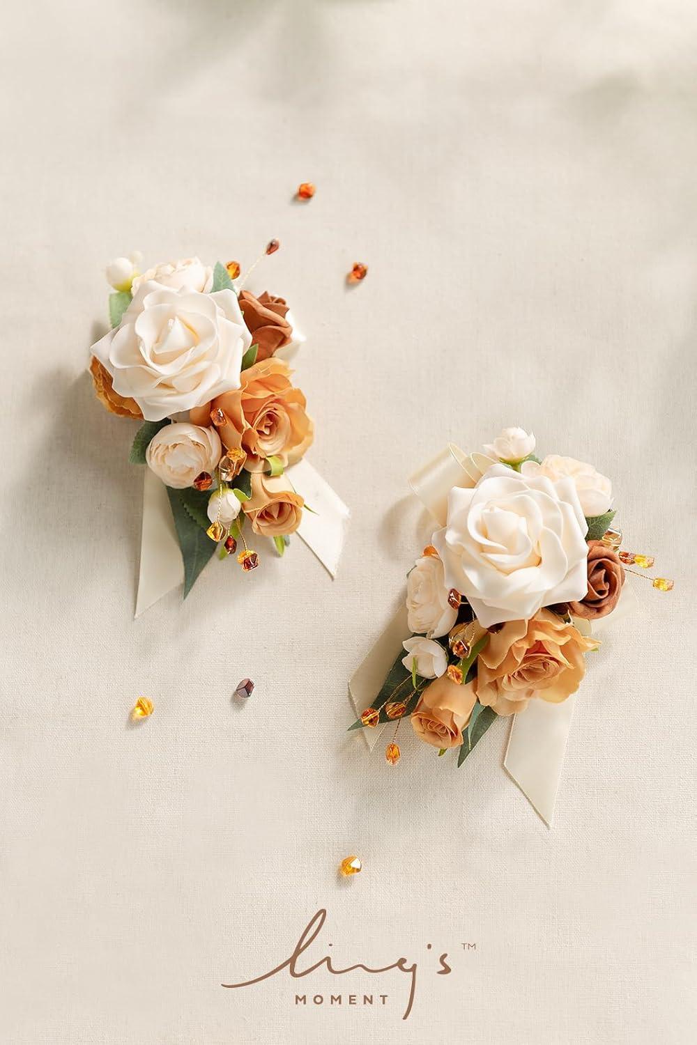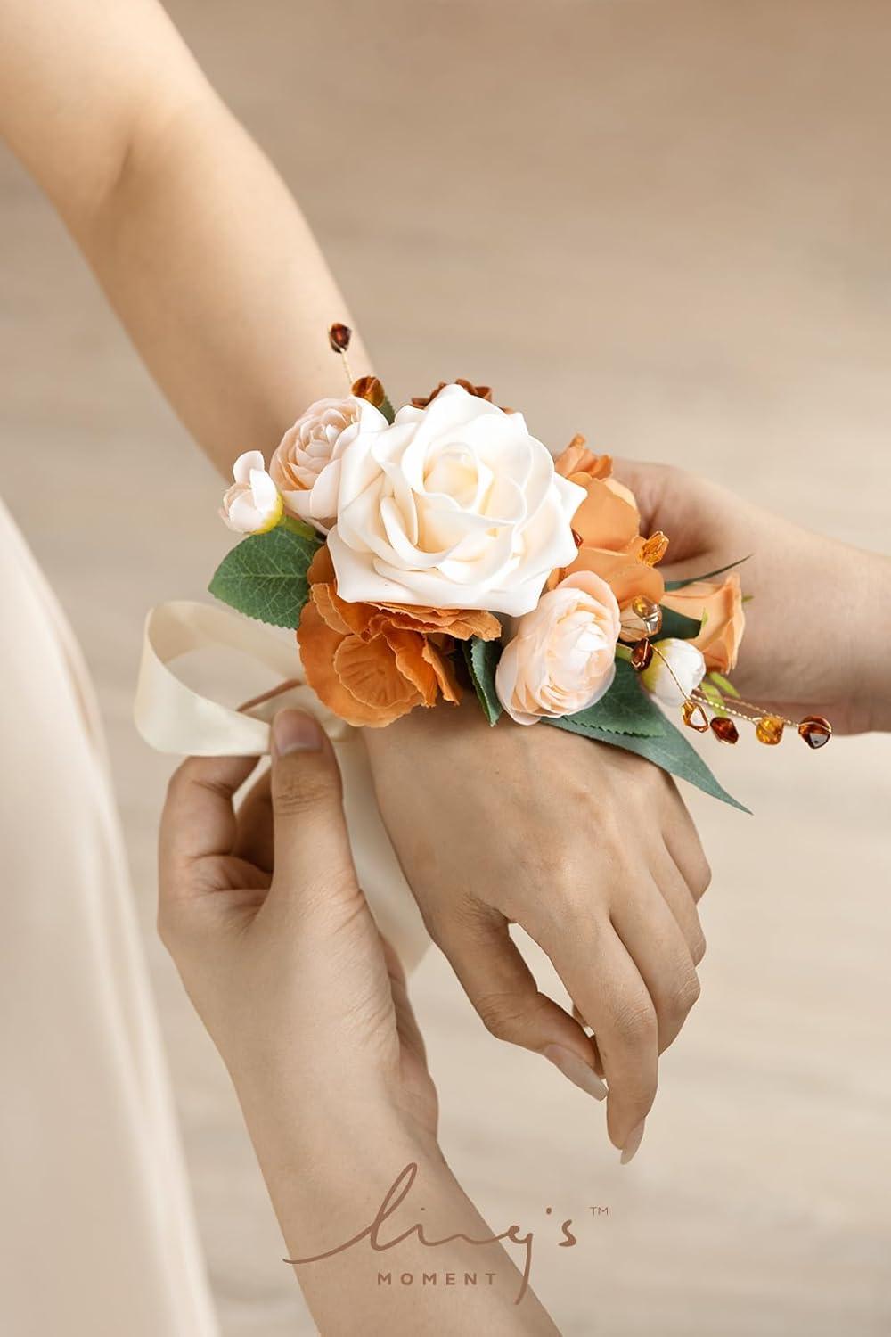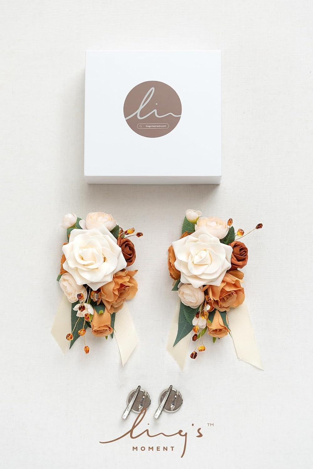 imageLings Moment 2pcs Prom WristShoulder Corsage Artificial Flower GirlMother HomecomingWedding Corsage Wristlet Dcor etc Black Gothic BurgundyOrfall Terracotta  Cream