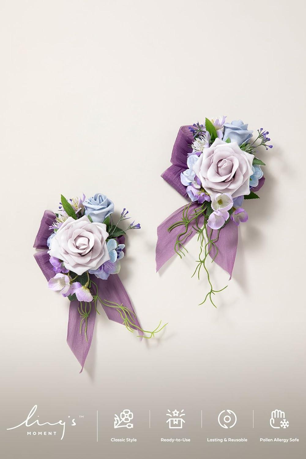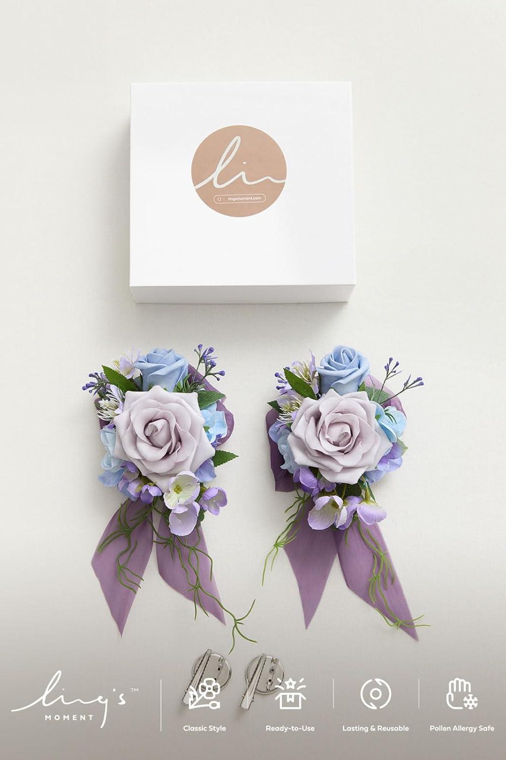 Ling’s Moment 2pcs Prom Wrist/Shoulder Corsage Artificial Flower, Girl/Mother Homecoming/Wedding Corsage Wristlet Décor, etc. Black Gothic Burgundy(Prpl-purple Lavender & Lilac)