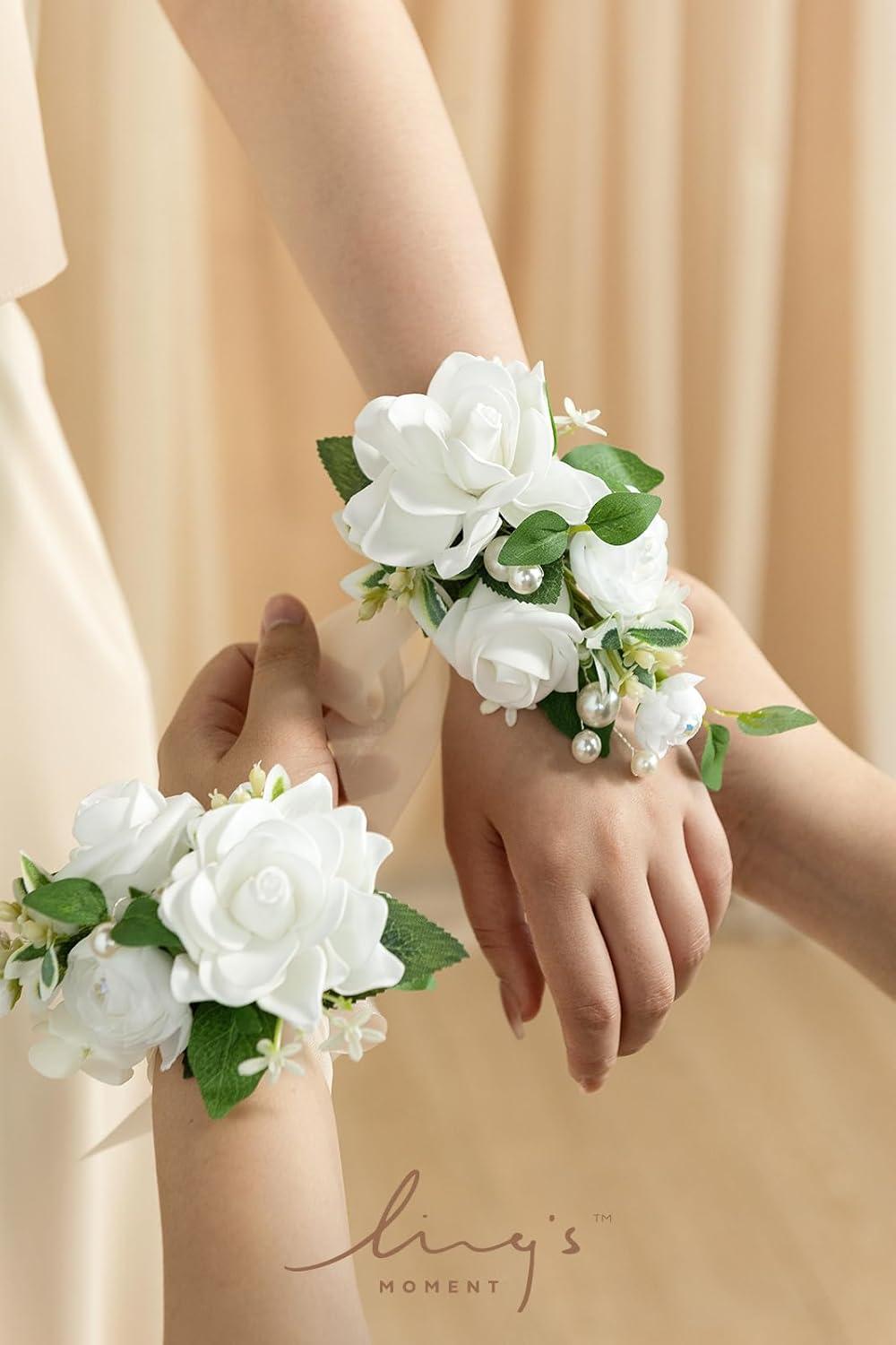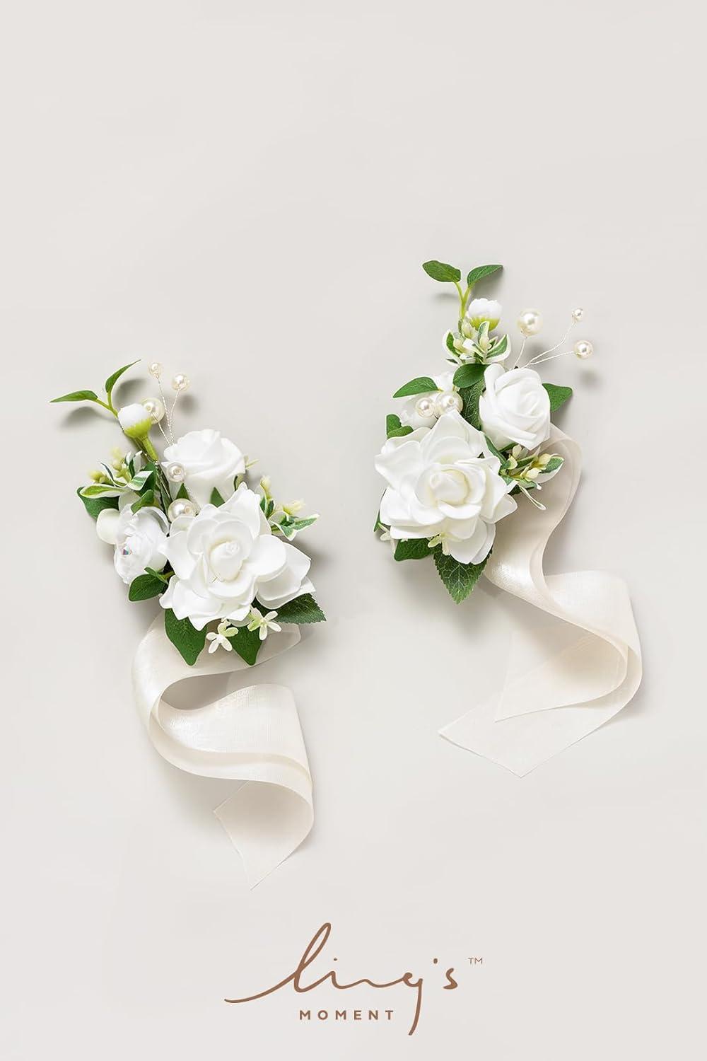 【Package and Size】Set of 2 corsages, each flower arrangement is approx. 4.75″ dia. With white lace corsage wristlet, easy to wear, comfortable, lovely and firm, fits any wrist size.