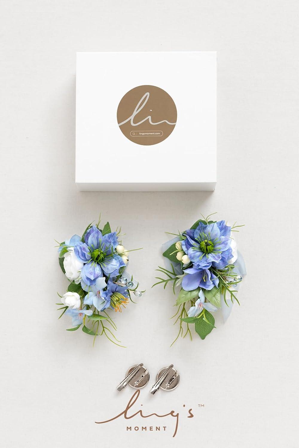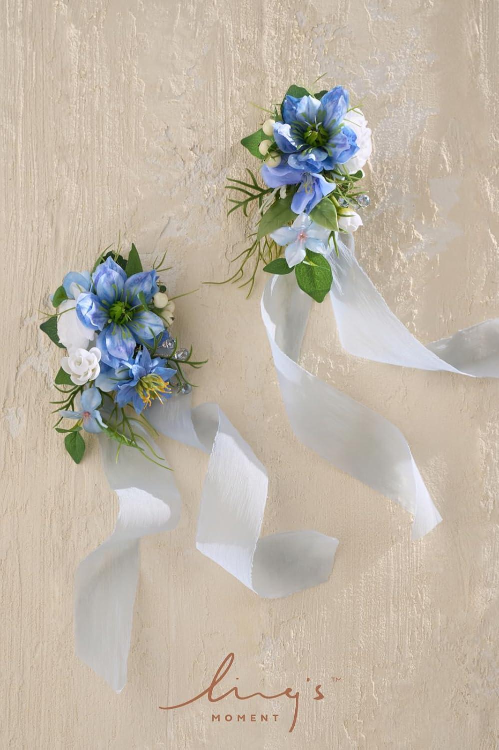 Ling’s moment 2pcs Prom Wrist/Shoulder Corsage Artificial Flower, Girl/Mother Homecoming/Wedding Corsage Wristlet Décor, etc. Blush Cream(Blu-blue)