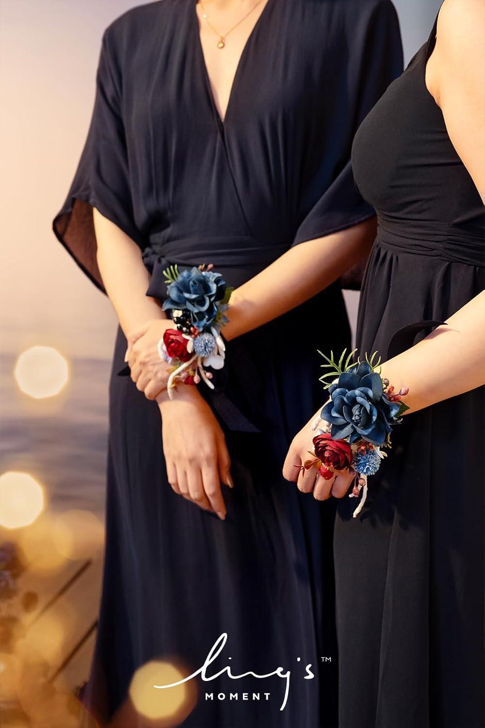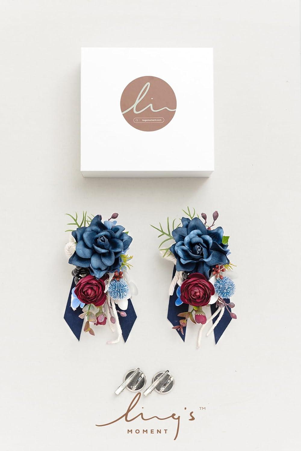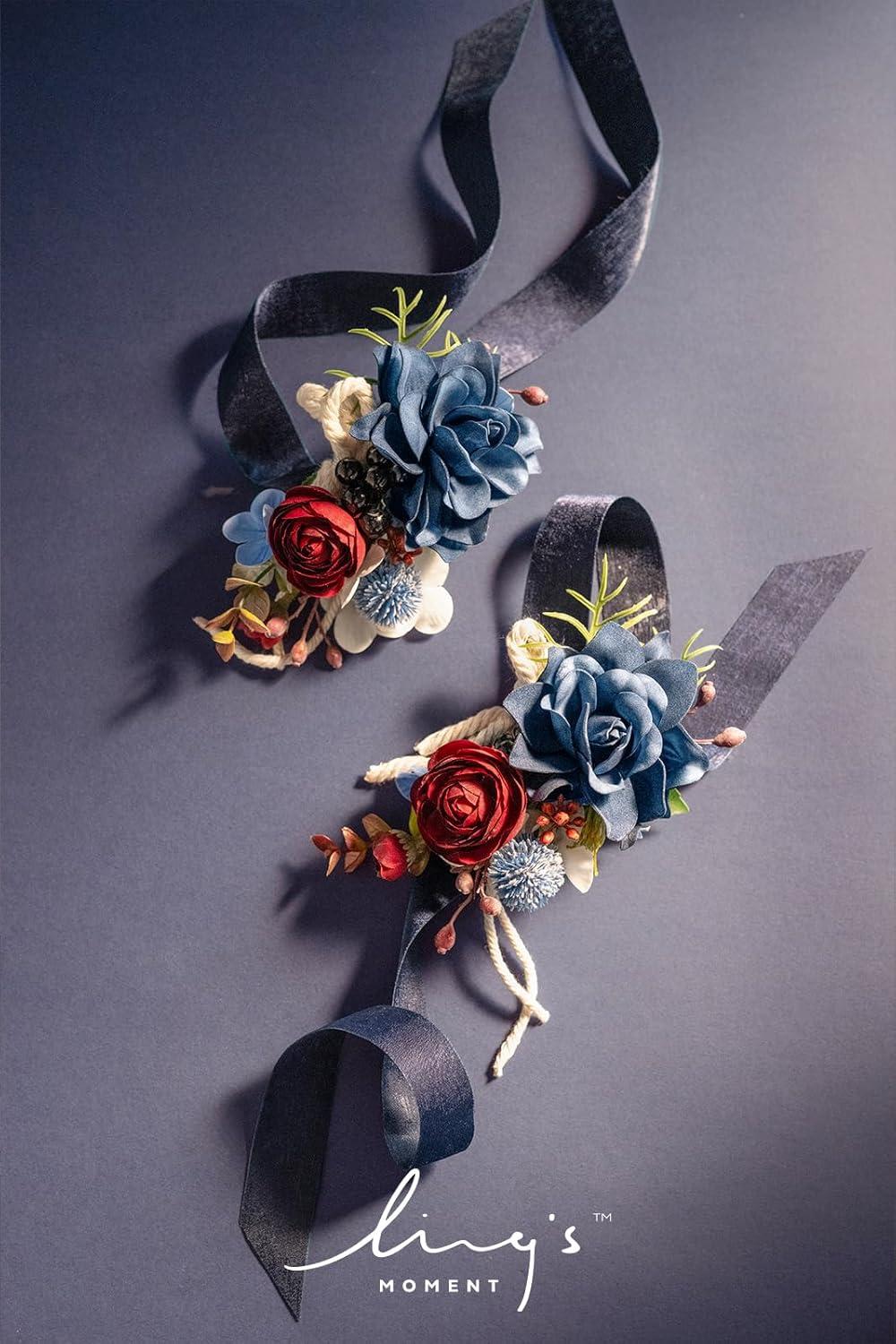 Ling's moment 2pcs Prom Wrist/Shoulder Corsage Artificial Flower, Girl/Mother Homecoming/Wedding Corsage Wristlet Décor, etc. Blush Cream(Blu-navy Blue & Burgundy)
