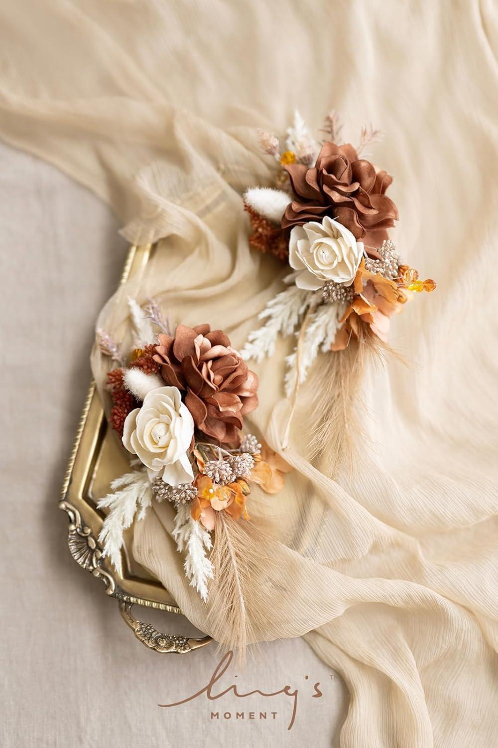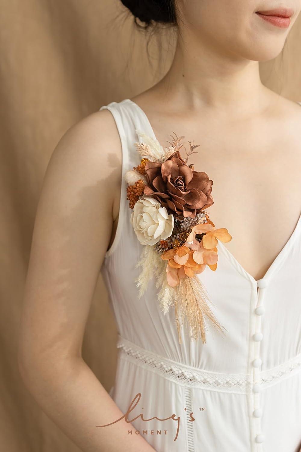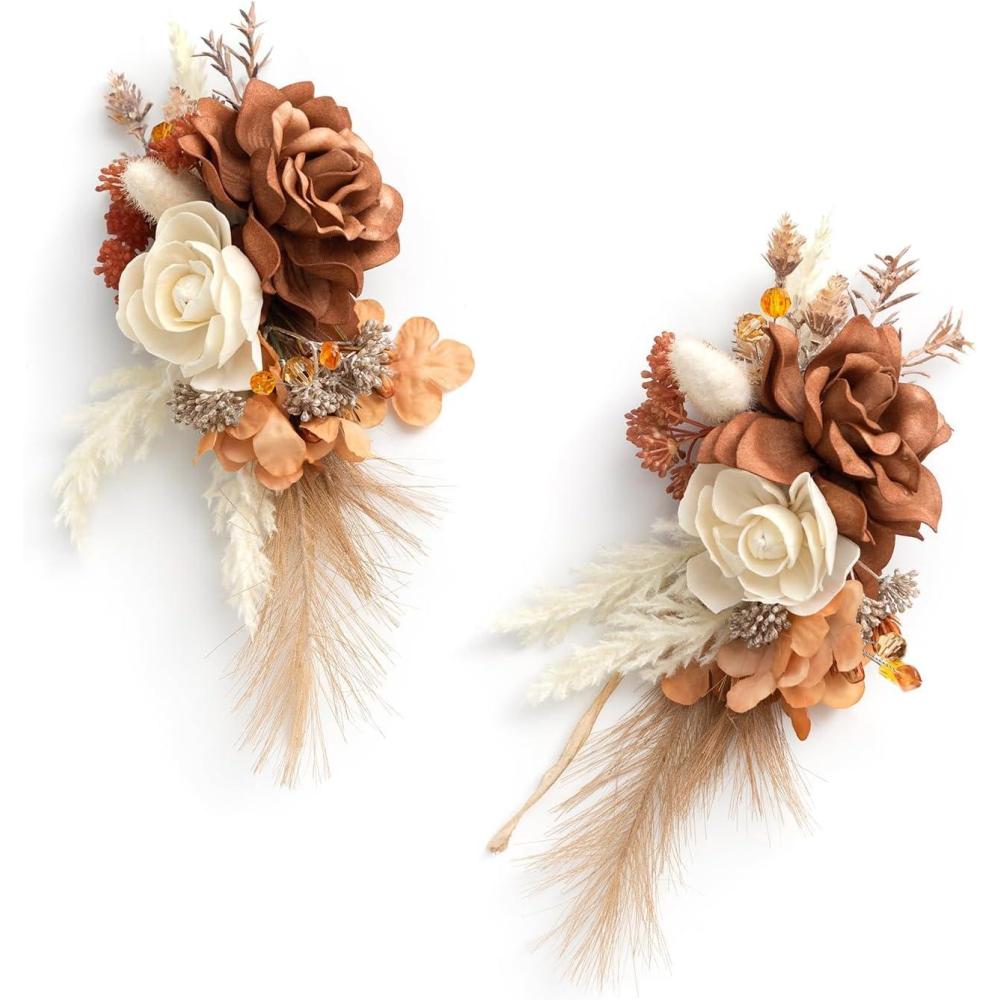image:imageLings moment 2pcs Prom WristShoulder Corsage Artificial Flower GirlMother HomecomingWedding Corsage Wristlet Dcor etc Blush CreamOrrustic Boho Orange  Sola Wood