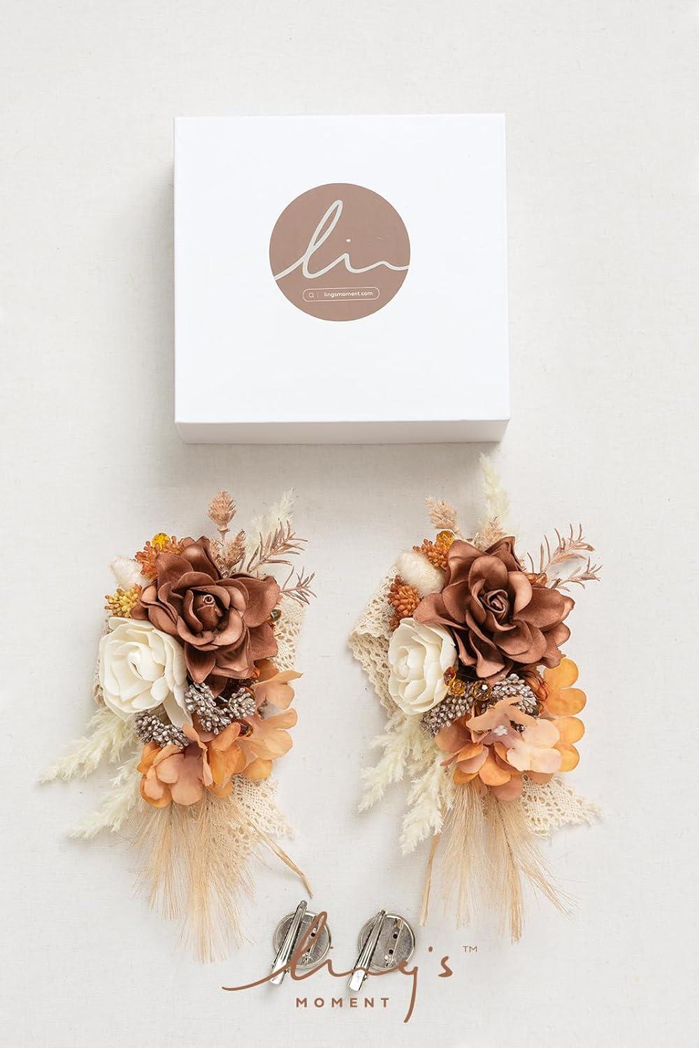 Ling’s moment 2pcs Prom Wrist/Shoulder Corsage Artificial Flower, Girl/Mother Homecoming/Wedding Corsage Wristlet Décor, etc. Blush Cream(Or-rustic Boho Orange & Sola Wood)