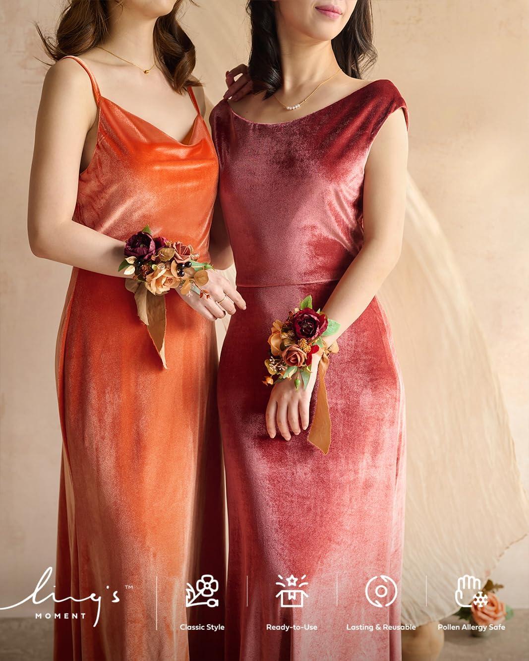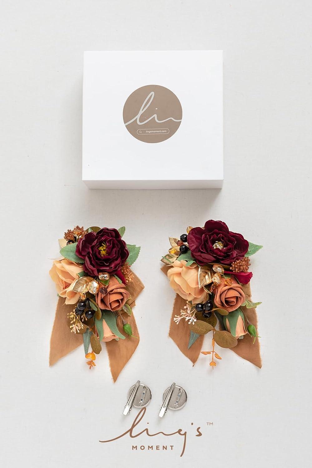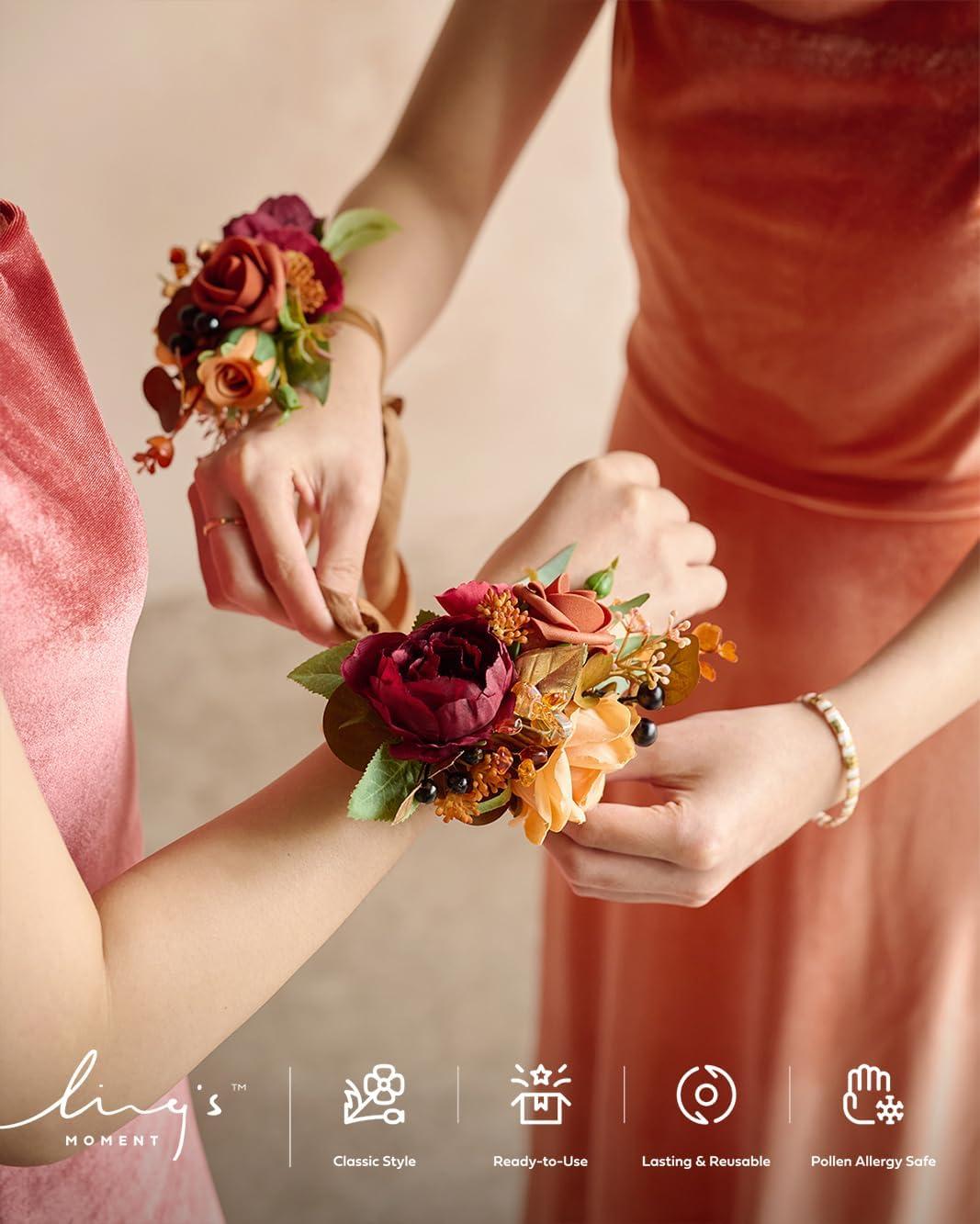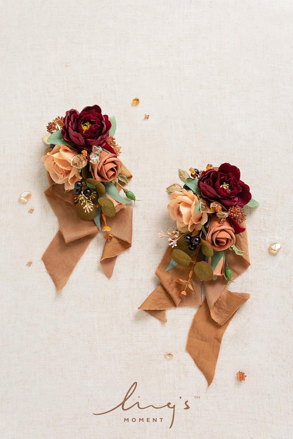 Ling’s moment 2pcs Prom Wrist/Shoulder Corsage Artificial Flower, Girl/Mother Homecoming/Wedding Corsage Wristlet Décor, etc. Blush Cream(Or-rustic Boho Orange & Sola Wood)