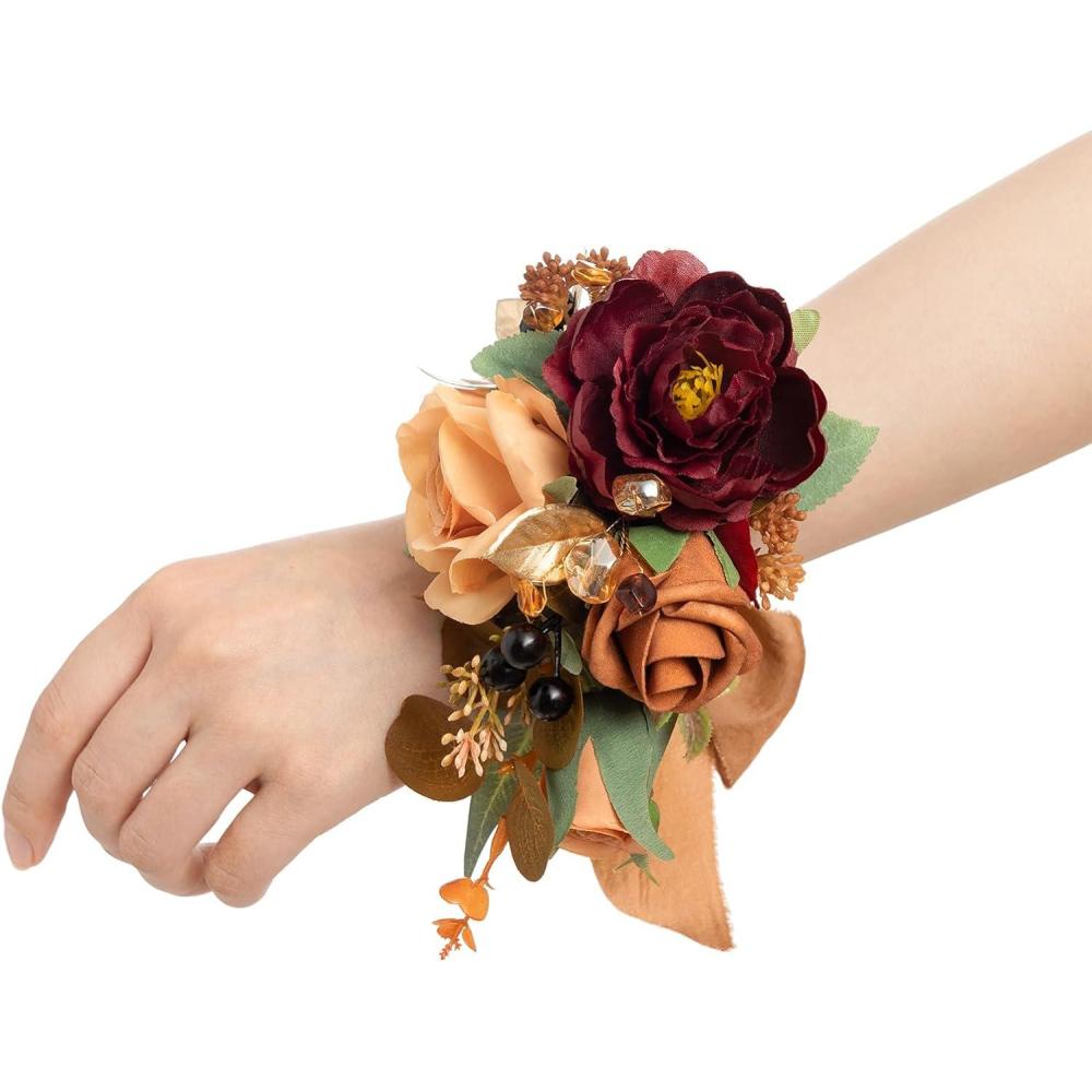 image:imageLings moment 2pcs Prom WristShoulder Corsage Artificial Flower GirlMother HomecomingWedding Corsage Wristlet Dcor etc Blush CreamOrrustic Boho Orange  Sola Wood