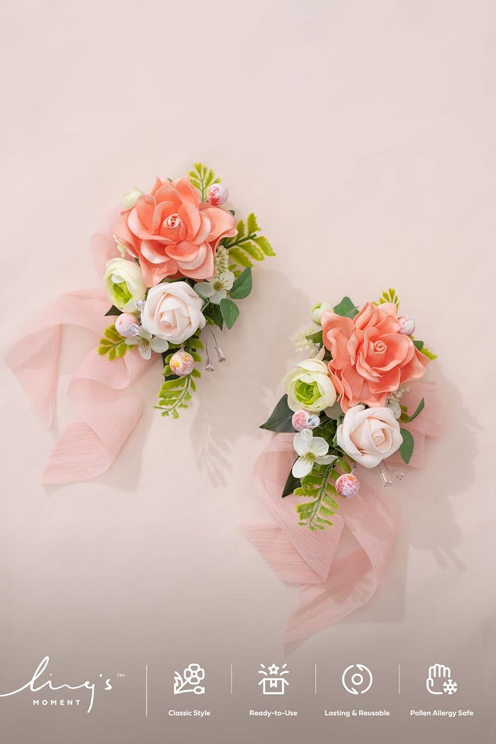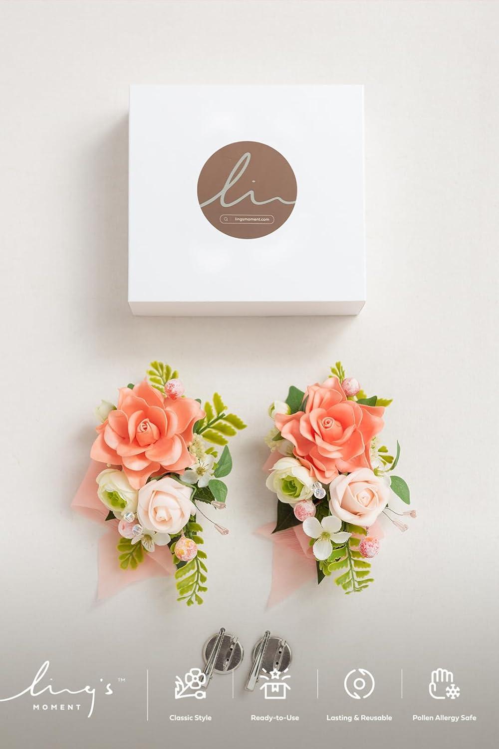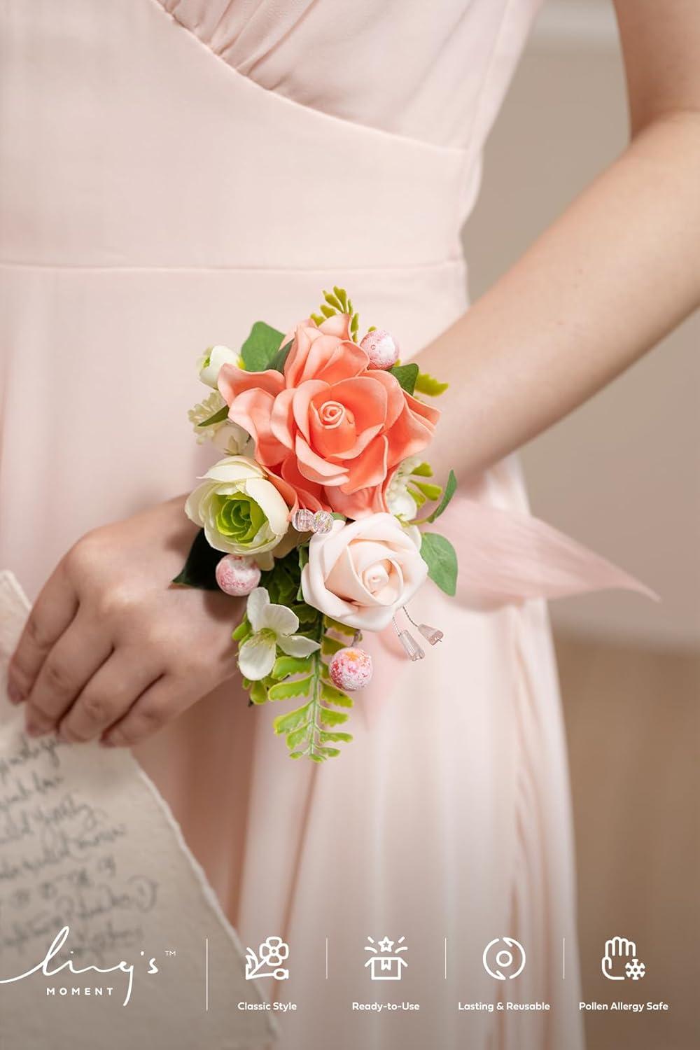 Ling’s moment 2pcs Prom Wrist/Shoulder Corsage Artificial Flower, Girl/Mother Homecoming/Wedding Corsage Wristlet Décor, etc. Blush Cream(Pk-blush Green & Pink)