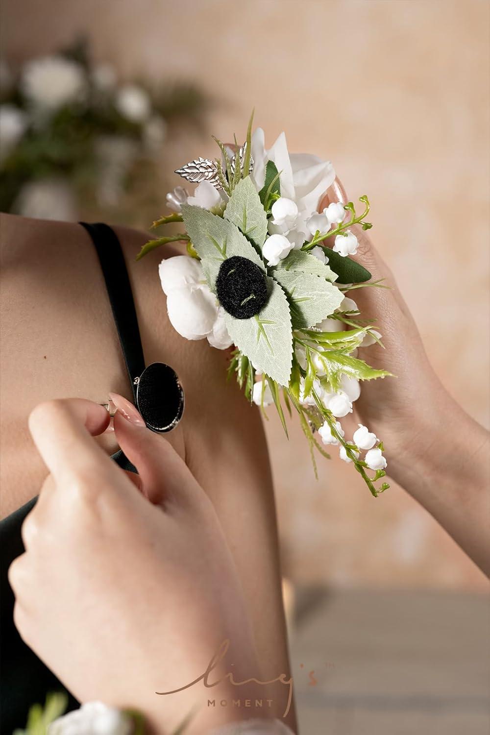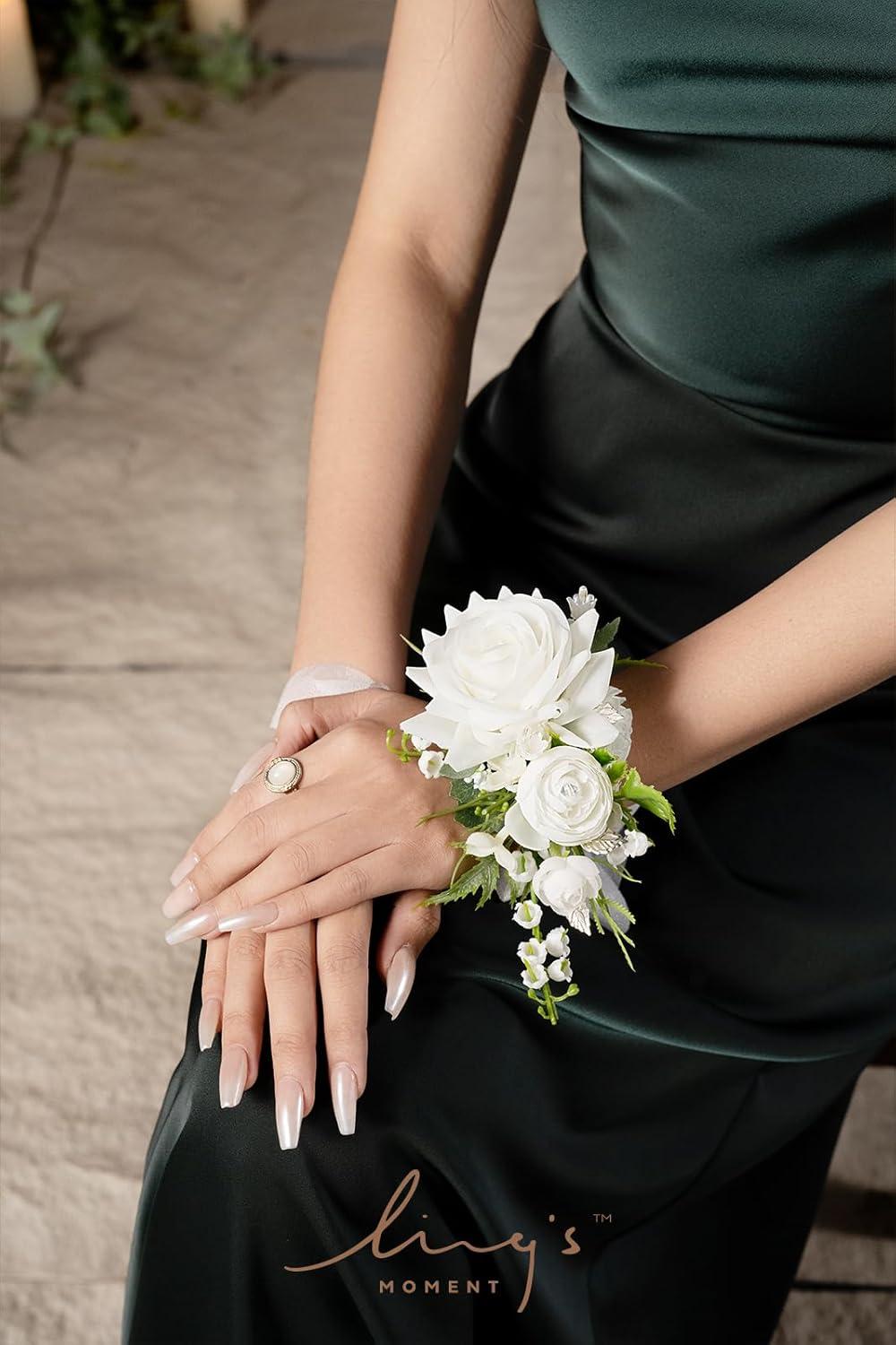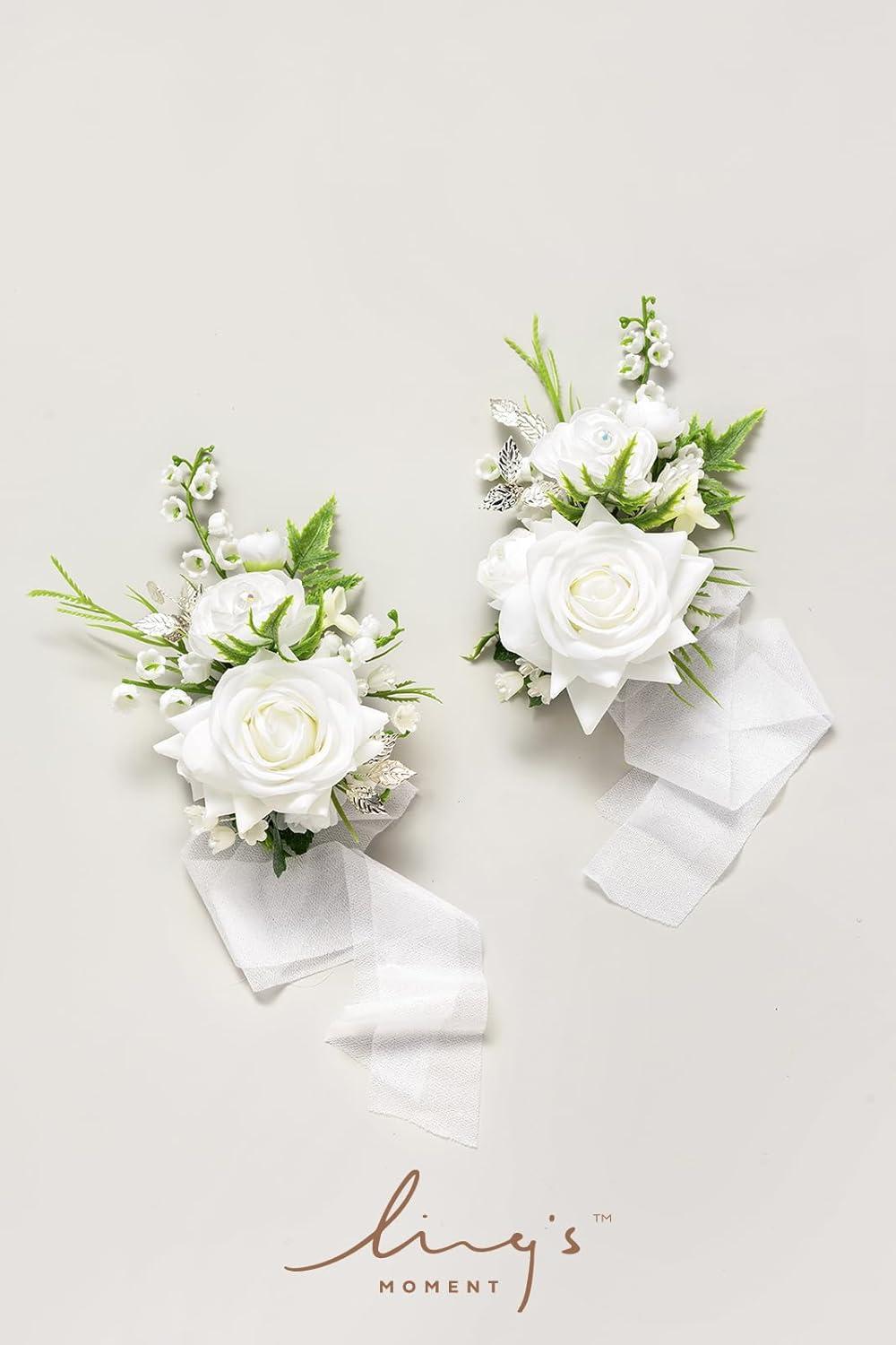 Ling’s moment 2pcs Prom Wrist/Shoulder Corsage Artificial Flower, Girl/Mother Homecoming/Wedding Corsage Wristlet Décor, etc. Blush Cream(Wht-white & Lily Valley)