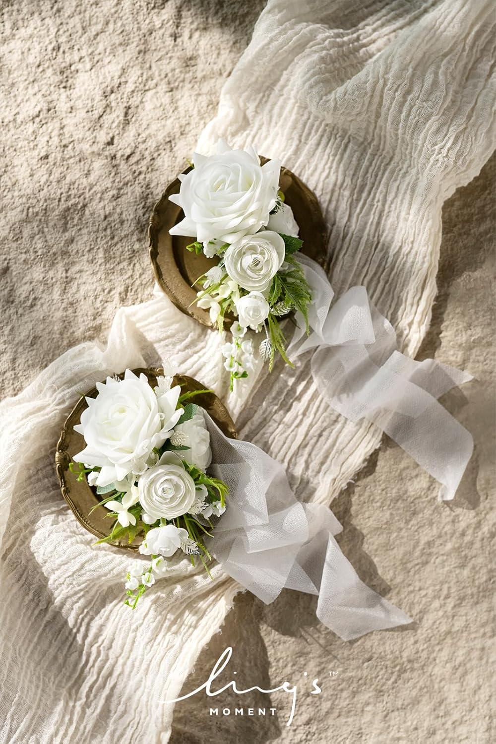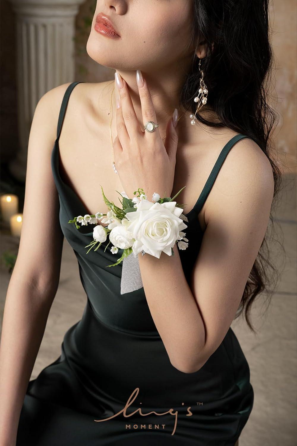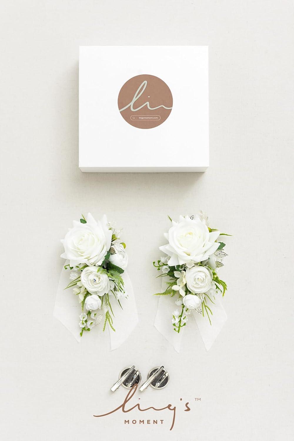 Ling’s moment 2pcs Prom Wrist/Shoulder Corsage Artificial Flower, Girl/Mother Homecoming/Wedding Corsage Wristlet Décor, etc. Blush Cream(Wht-white & Lily Valley)