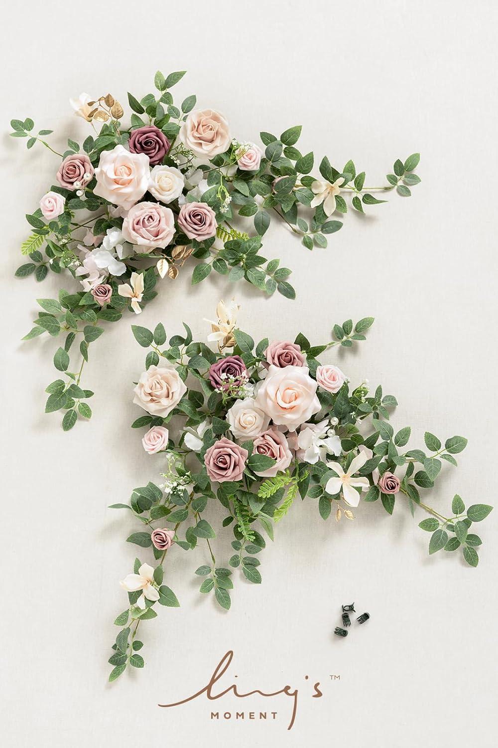 Ling's moment 2pcs Wedding Flowers Garland Artificial Floral Swag Arch Decorations Greenery Arrangements Lilac & Gold Ceremony Reception Garden Easel Wall Home Entryway Outdoor NOT Include Sign(Dusty Rose & Cream)