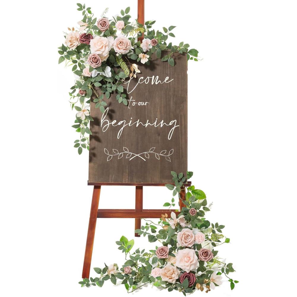 Ling’s moment 2pcs Wedding Flowers Garland Artificial Floral Swag Arch Decorations Greenery Arrangements Lilac & Gold Ceremony Reception Garden Easel Wall Home Entryway Outdoor NOT Include Sign(Dusty Rose & Cream)