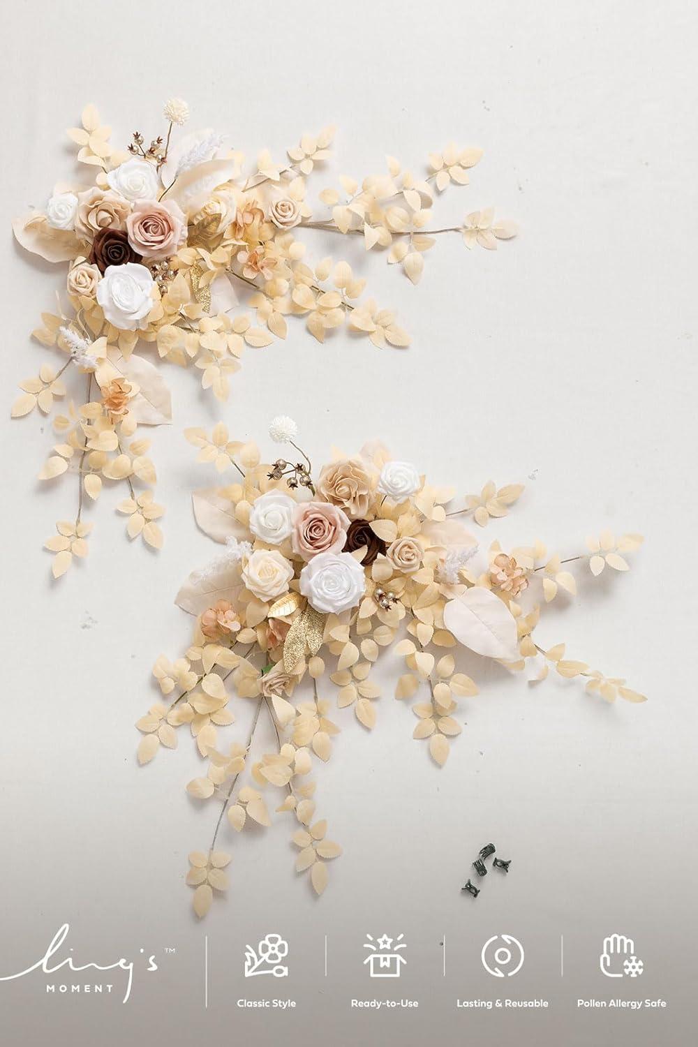 imageLings moment 2pcs Wedding Flowers Garland Artificial Floral Swag Arch Decorations Greenery Arrangements Lilac ampamp Gold Ceremony Reception Garden Easel Wall Home Entryway Outdoor NOT Include SignWhite  Beige  Blush