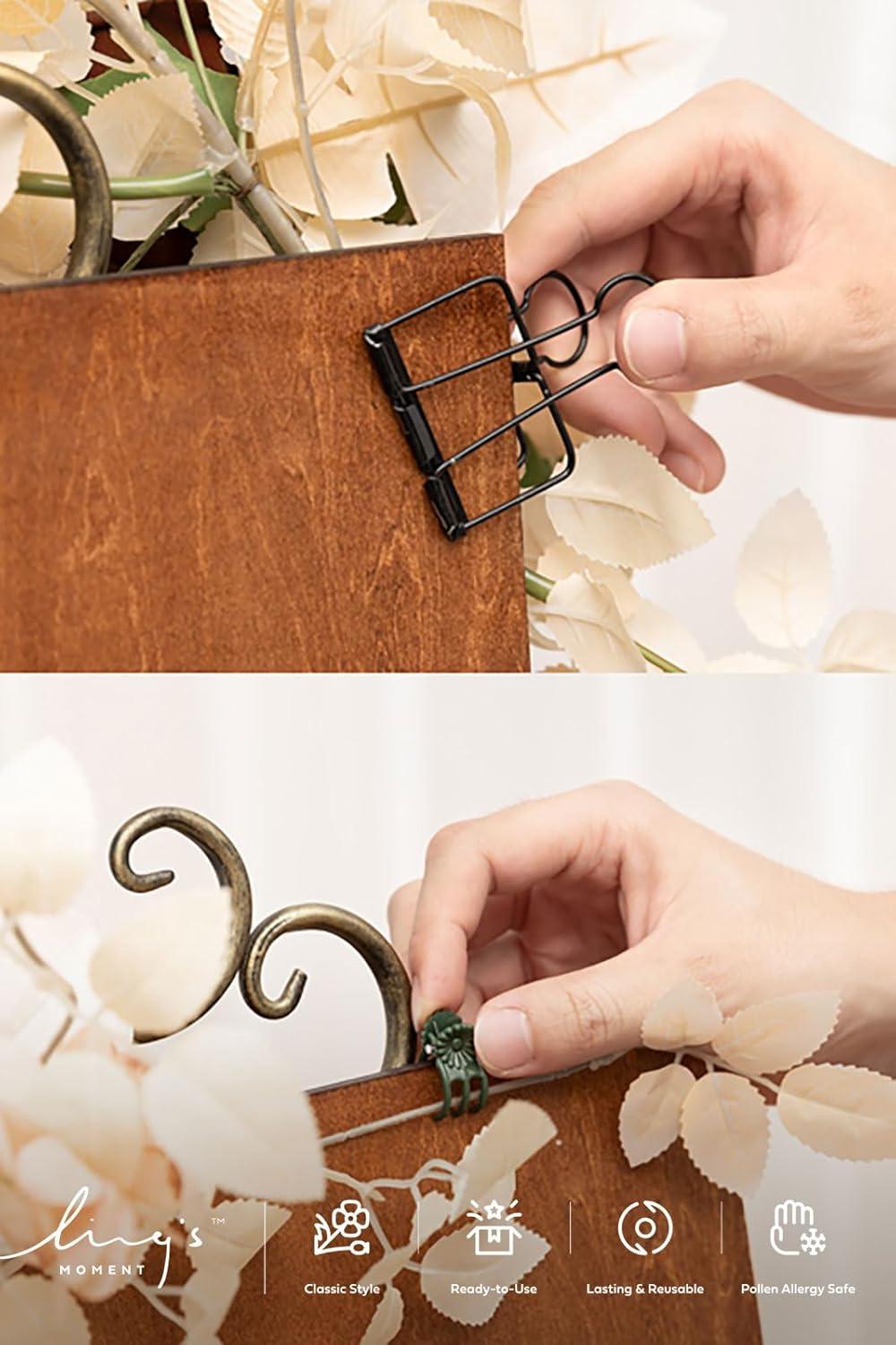 EASY TO USE: Fasten the wedding seating chart swag to the edge of the easel stand for sign with clips, which won't damage fabrics and flowers and is easy to remove off. Comes with four small claw clips that can be used to clamp the leaf vine branches on the stand, like a vine growing on an easel.